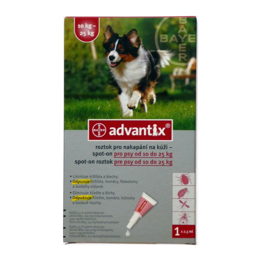 Vysoce spolehlivá ochrana proti klíšťatům, blechám a komárům pro psy od 10 kg do 25 kg.