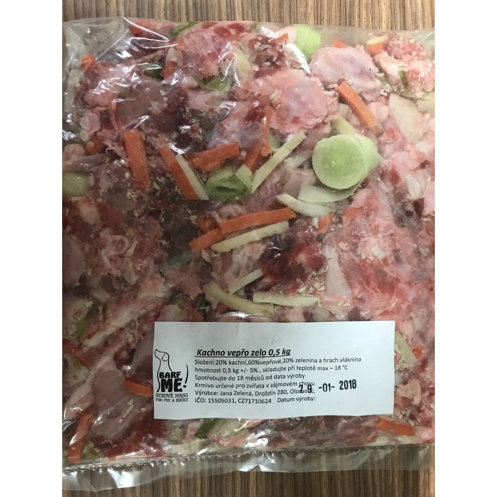 Složení: 20 % Kachní křídla, 60 % vepřové mleté - svalovina, kůže, chrupavka, 20 % zelenina - mrkev, pórek, celer, petržel, hrachová vláknina.