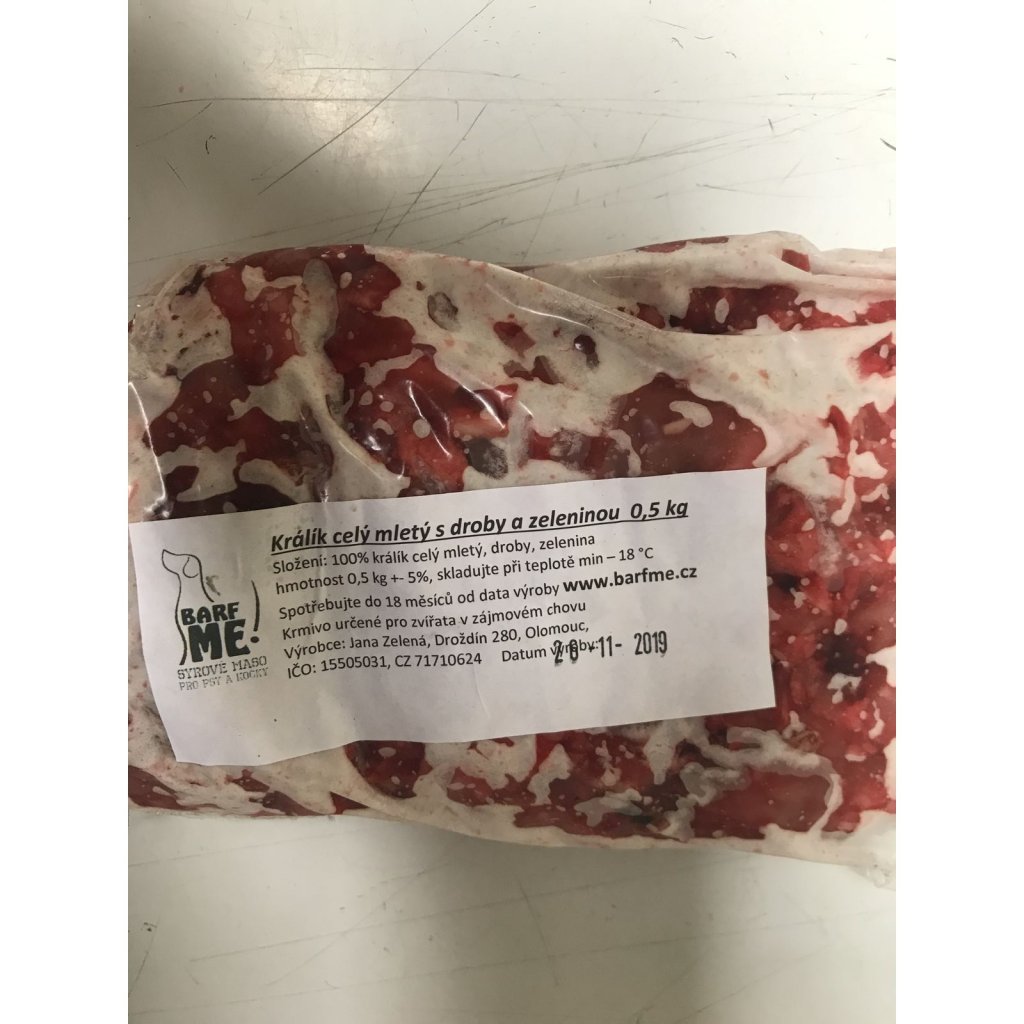 Barf me Králík celý mletý s droby a zeleninou 500 g