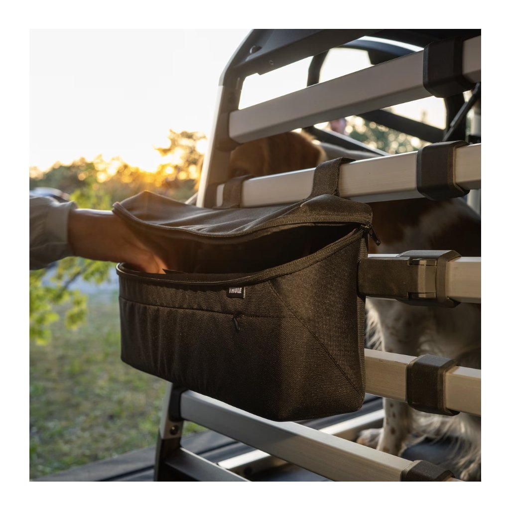 Praktický organizér k psí přepravní kleci udržuje vybavení vašeho psa přehledně na místě, snadno se připevňuje a lze jej použít i jako samostatnou tašku s rukojetí.