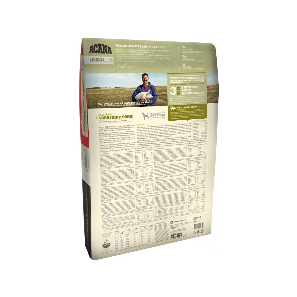 KRMIVO S JEDINÝM ZDROJEM ŽIVOCIŠNÉHO PROTEINU ACANA YORKSHIRE PORK OBSAHUJE 50% YORKSHIRSKÉHO VEPŘOVÉHO, KTERÉ JE NÁM DODÁVANÉ ČERSTVÉ V PODÍLU CELÉ KOŘISTI. DÍKY VÝTAŽKU Z MRAZEM SUŠENÝCH JATER CHUTNÁ I VYBÍRAVÝM JEDLÍKŮM. ČERSTVÉ DÝNĚ A MÁSLOVÉ DÝNĚ POSKYTUJÍ ROZPUSTNOU VLÁKNINU, COŽ PROSPÍVÁ PSŮM S CITLIVÝM ZAŽÍVÁNÍM.