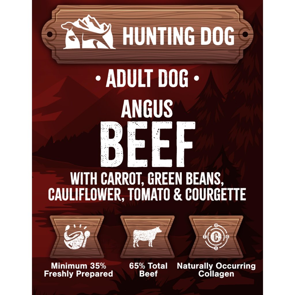 65 % hovězí (35 % čerstvě připravené hovězí Angus, 25 % sušené hovězí , 5 % hovězí tuk), batáty, fazole, řepná dužina, sušená směs Superfoods (mrkev, zelené fazolky, květák, rajče, cuketa), minerály, Omega 3 doplněk, fruktooligosacharidy (FOS, 192 mg/kg), glukosamin (170 mg/kg), methylsulfonylmethan (170 mg/kg), chondroitin sulfát (125 mg/kg), mannanoligosacharidy (MOS, 48 mg/kg), olivový extrakt (0,01 %)