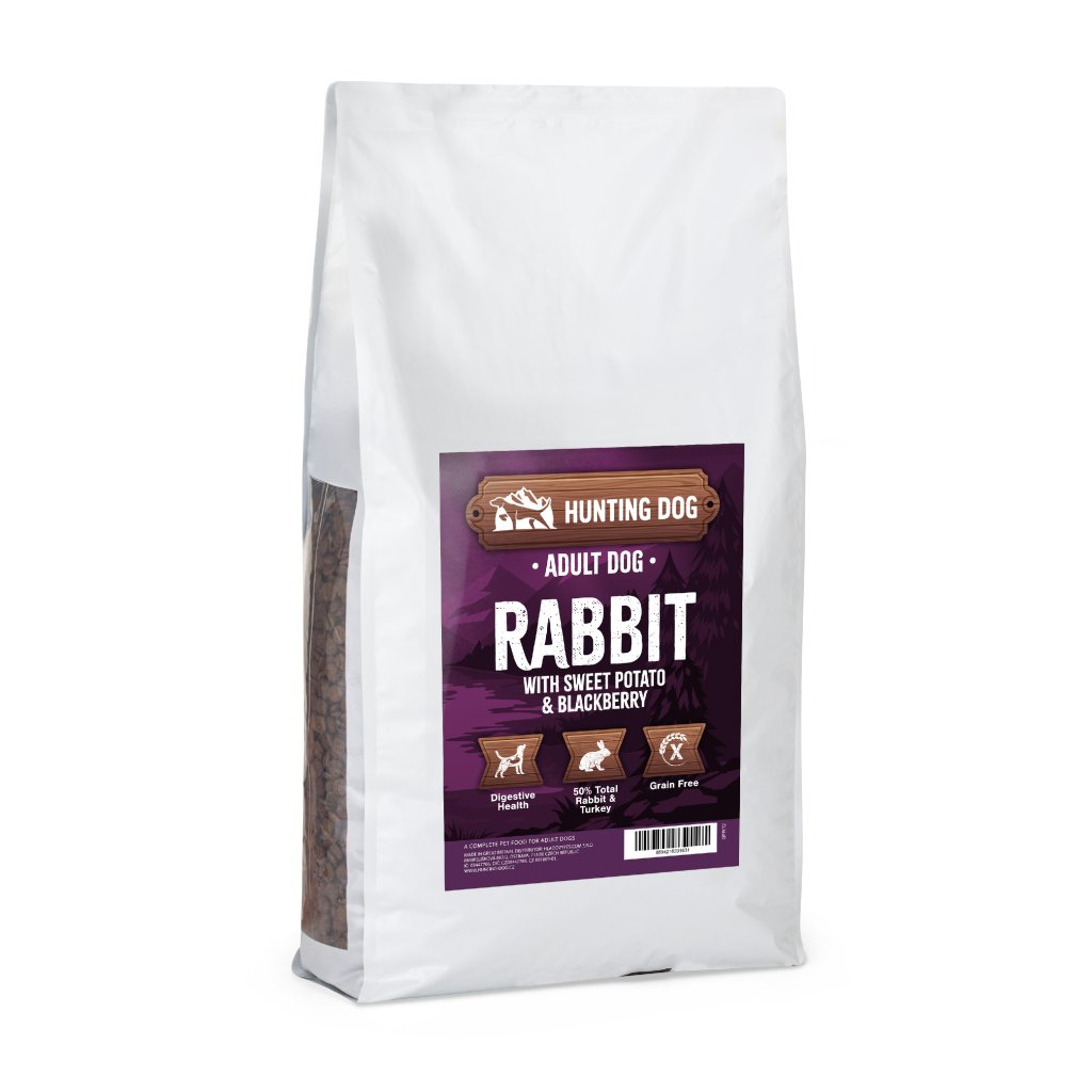 králík a krůta 50 % (čerstvě připravené králičí 30 %, sušené krůtí 18,5 % a krůtí omáčka 1,5 %), batáty (21,5 %), hrášek (9,5 %), brambory, řepná dužina, lněné semínko, doplněk Omega 3, minerály, ostružiny (0,22 %), fruktooligosacharidy (FOS, 96 mg/kg), mannanoligosacharidy (MOS, 24 mg/kg)