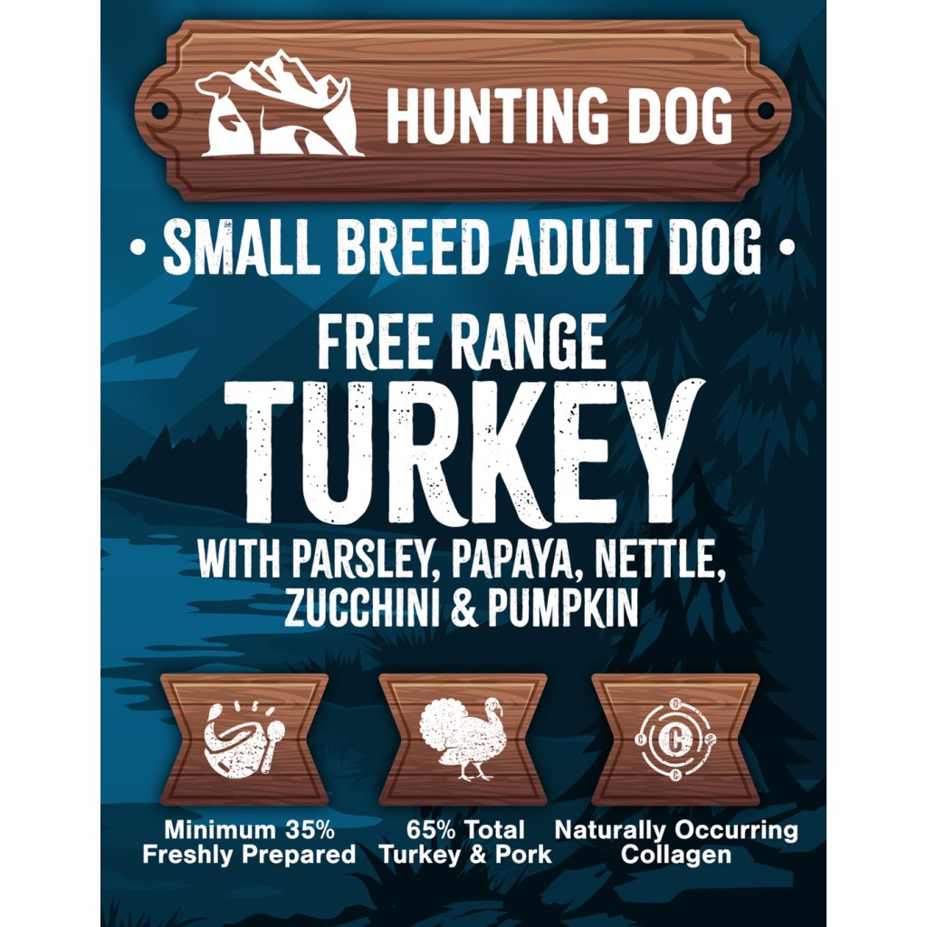 Kompletní krmivo pro psy. Receptura s krocanem z volného chovu pro dospělé psy malých plemen.