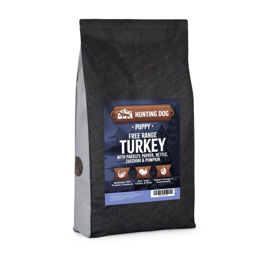 Kompletní krmivo pro psy. Receptura s krocanem z volného chovu pro štěňata.