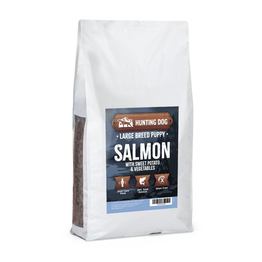Tato receptura je postavena pro štěňata velkých plemen. Hlavním zdrojem bílkovin je losos, který si díky šetrné přípravě zachovává cenné bílkoviny a dochází také ke zvýšení chutnosti a stravitelnosti. Bohatě se vyskytující omega 3 esenciální mastné kyseliny se podílejí na podpoře kvality kůže, srsti, zdraví kloubů a mají protizánětlivé vlastnosti.