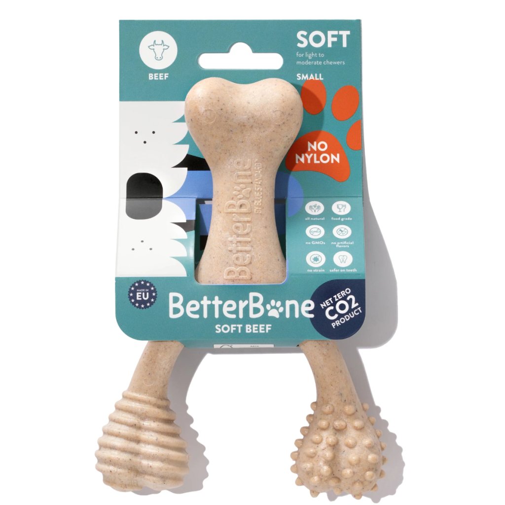 BetterBone Soft je žvýkací hračka určená především pro psy, kteří rádi žvýkají. Tato žvýkací hračka je vyrobena z přírodních ingrediencí jako je celulóza a rostlinný olej, bez GMO. Hračka neobsahuje nylon, surovou kůži, GMO, umělá barviva, umělé příchutě, škodlivé chemikálie je bezpečná pro požití v malých množstvích. BetterBone je hypoalergenní hračka. Řada BetterBone Soft byla navržena tak, aby svými jedinečnými konci účinně masírovali ďásna a čistili zuby. BetterBone hovězí je naplněný přírodní hovězí příchutí, která poskytuje neodolatelnou chuť. BetterBone s hovězí příchutí nezašpiní koberce ani nábytek.