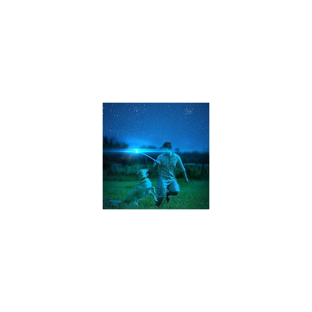 Aportovací pískací míček z přírodní gumy, který ve tmě výrazně svítí. Skvěle skáče, je velmi odolný a perfektně padne do házečů Chuckit!