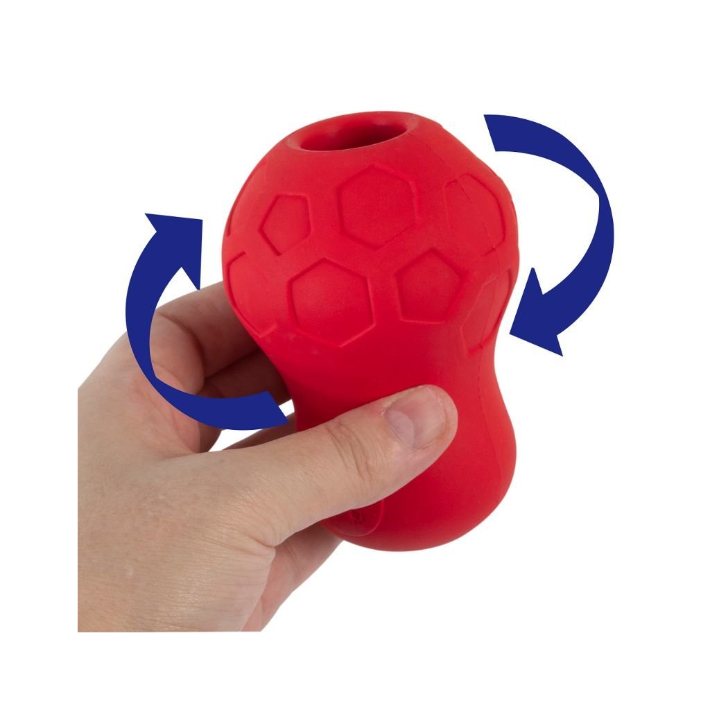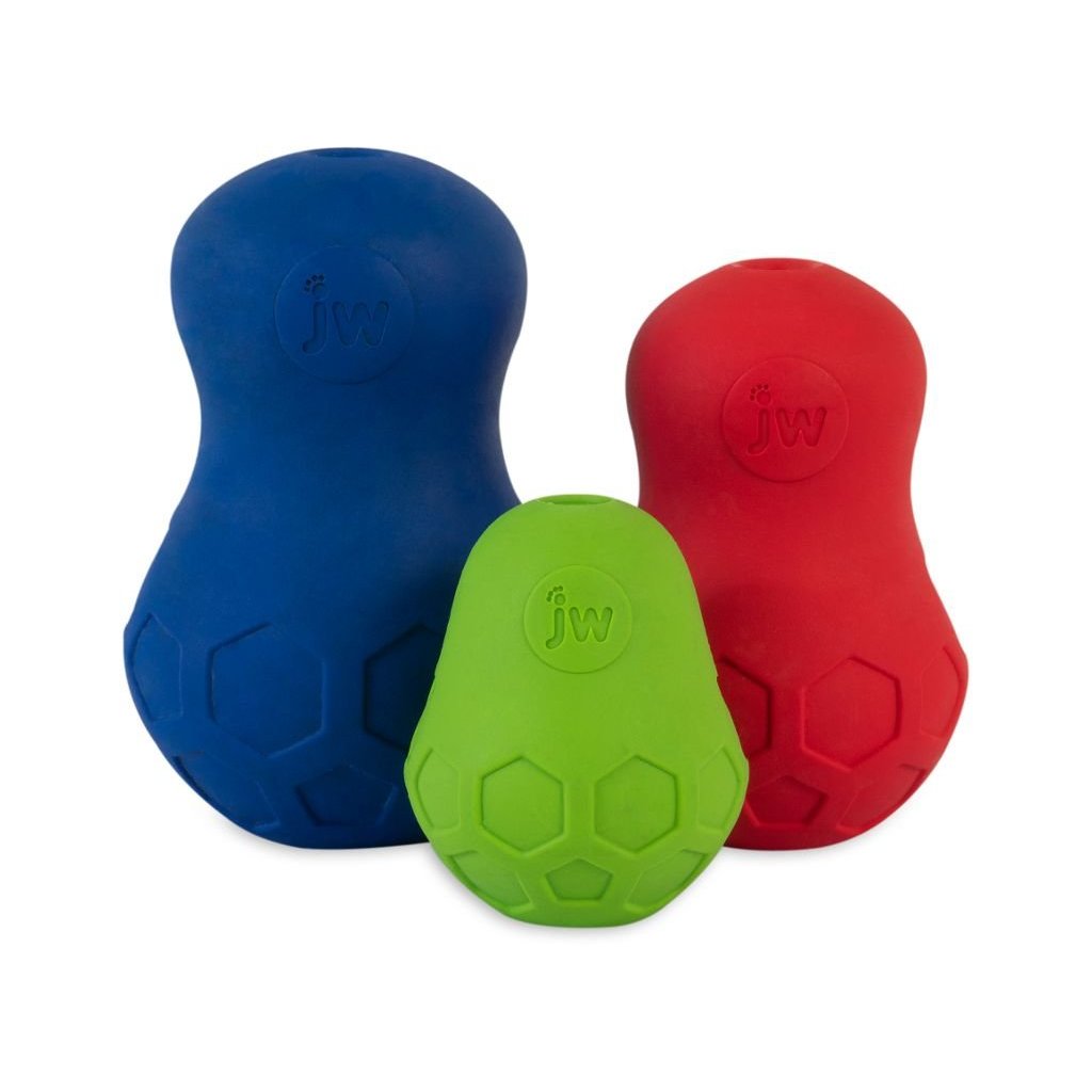 Díky svému speciálnímu patentovanému tvaru zabaví Vašeho pejska na delší dobu. Hračka se nepředvídatelné kolébá a odráží, přičemž pamlsky propadávají skrz patra a následně spodním otvorem ven.