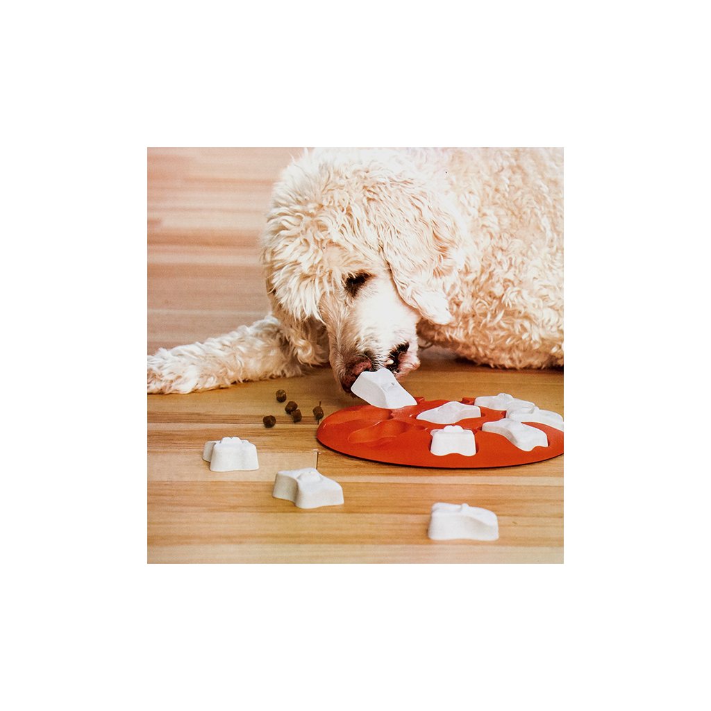 Hlavolamy od Niny Ottosson jsou vyvinuty tak, aby stimulovaly mozek vašeho psa. Naučte svého psího parťáka, jak hlavolam řešit, hrajte si a bavte se společně. Napovídání, chválení a opakované doplňování dobrot posílí váš společný vztah. Po celou dobu hry mějte pejska pod dozorem a nenechte ho hračku kousat. Do příští hry hlavolam schovejte.