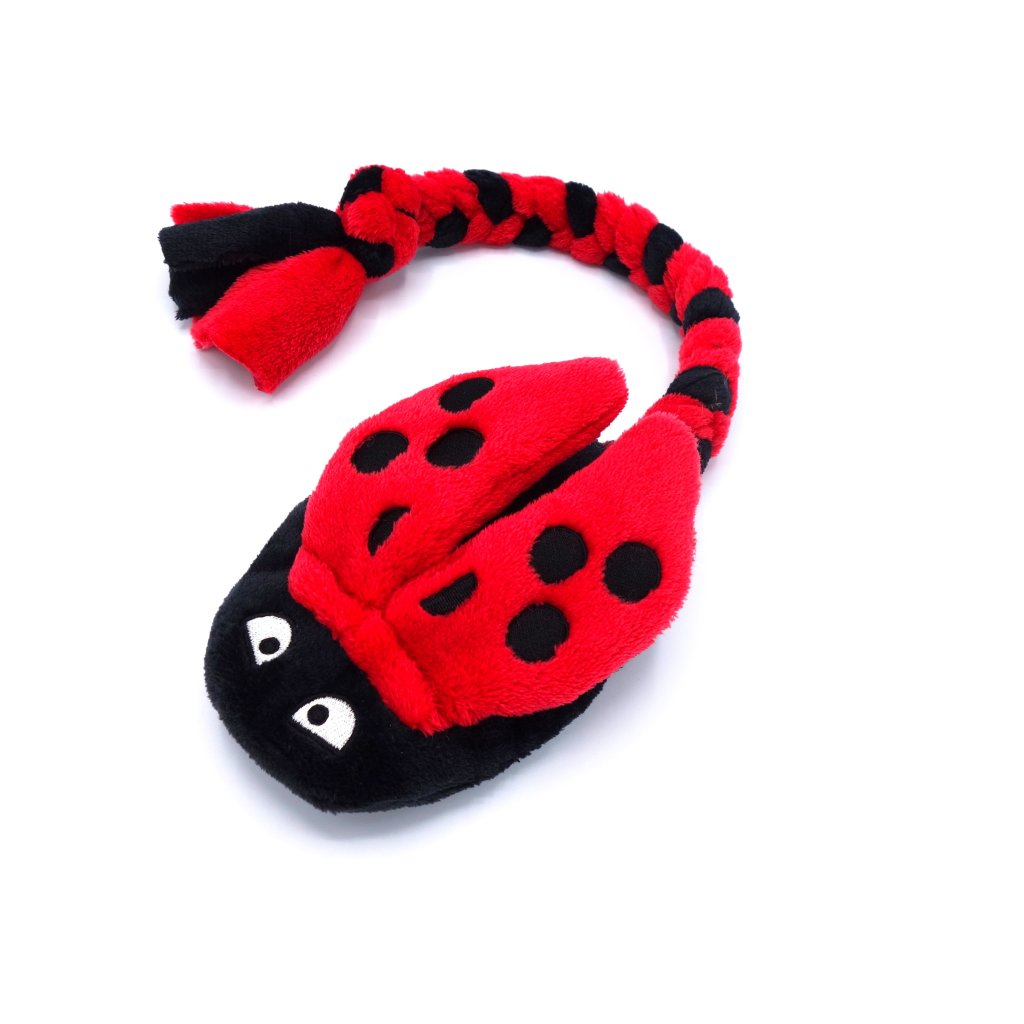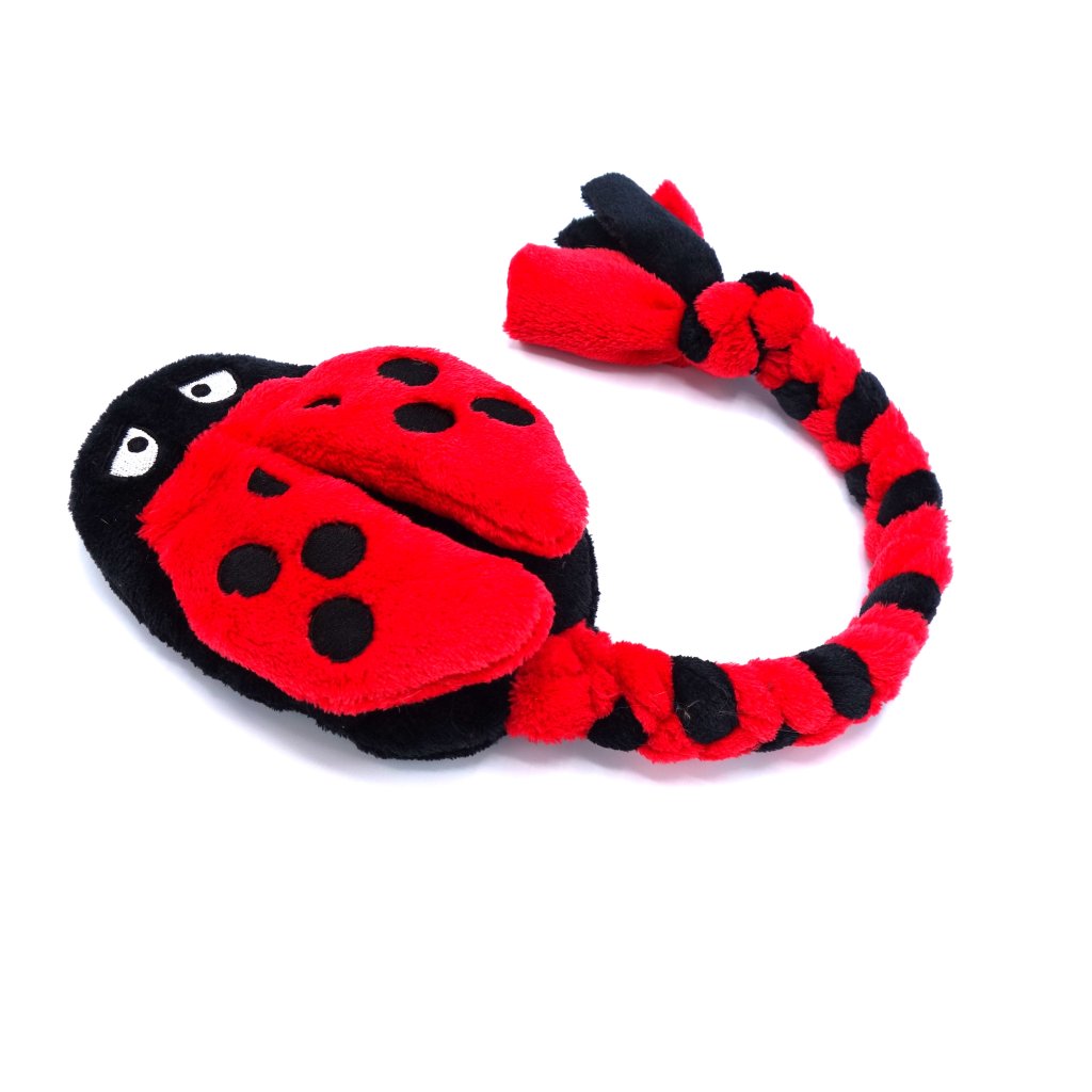 Veselá plyšová hračka pro psy zaujme malé psí hrdiny i štěňátka. Beruška má ocásek z flísu, za který se o ni můžete přetahovat se svým chlupáčem. Ocásek je na několikrát přišitý k tělíčku hračky technickou nití a vydrží i drsné zacházení. Plyšovou berušku jsme ušili ze dvou vrstev, z pevné podšívky a z hebkého plyše. Uvnitř hračky je pískátko, vydává tedy zvuk, který pejsky baví. Hračka je bez výplně, nepodněcuje tak moc psy k vytrhávání vnitřností a dá se různě tvarovat a překrucovat. Hračku jsme vyrobili ručně v naší české dílně.