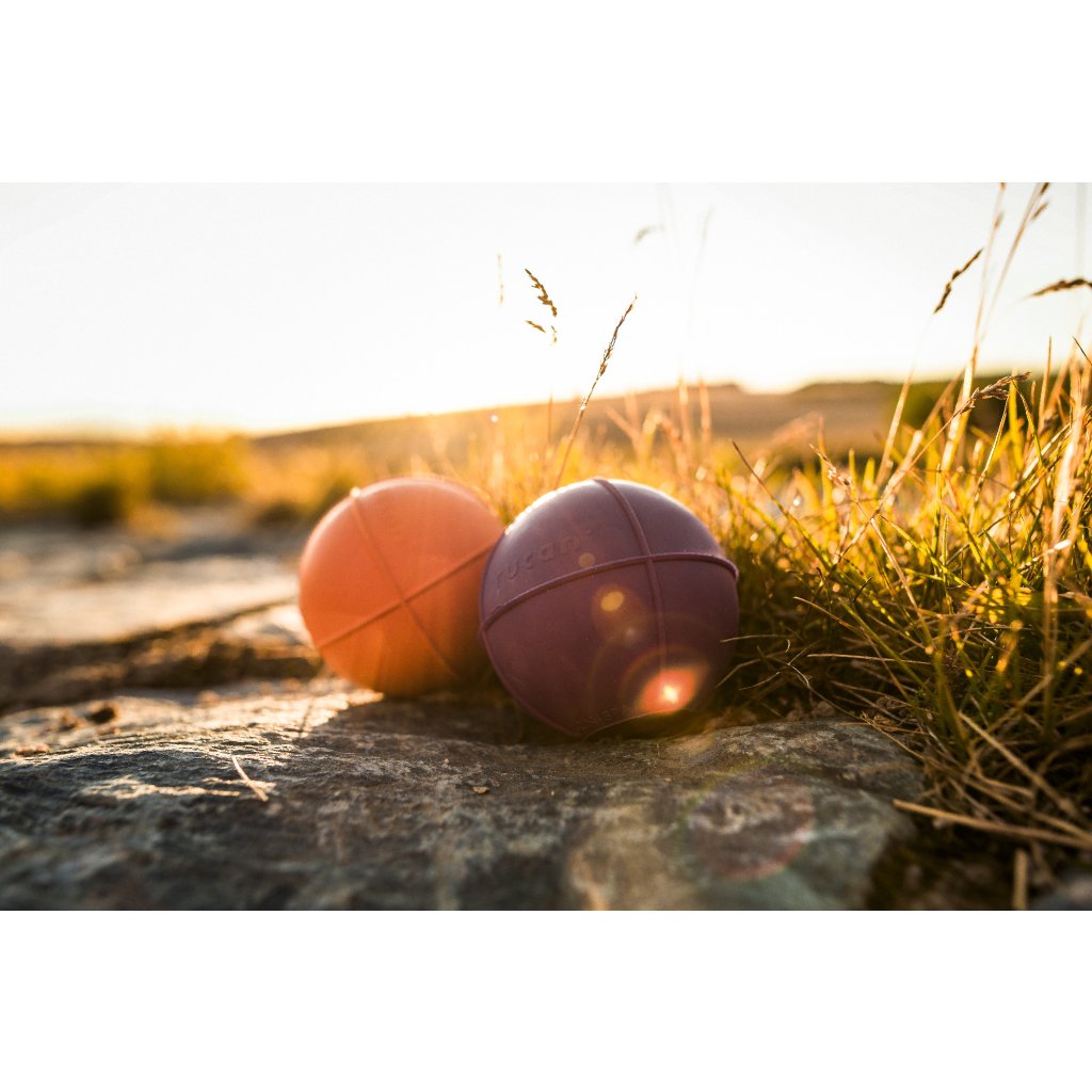 Plnící míček vysoké tvrdosti (fialová barva) o průměru 7 cm.