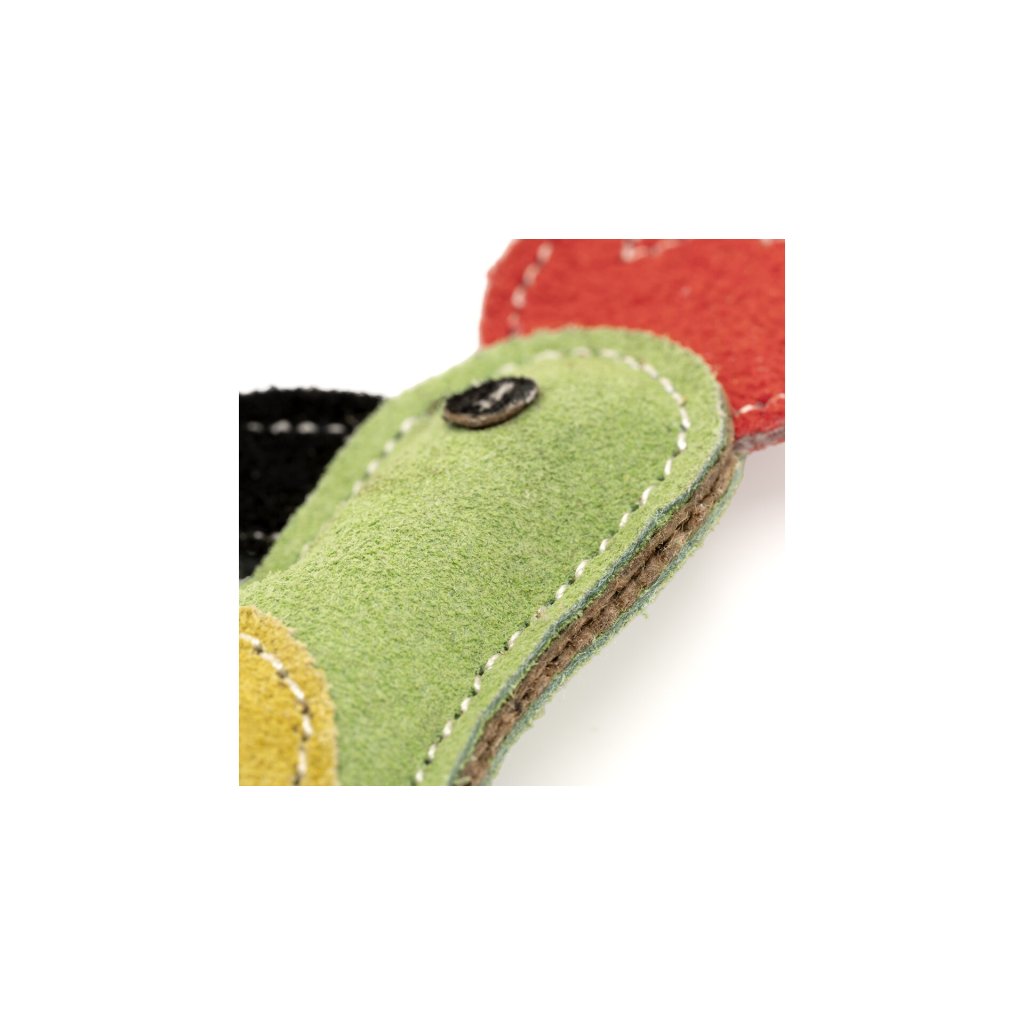 Přirozená vůně kůže připomíná pach kořisti, což v psovi probouzí lovecké instinkty a chuť kousat a lovit. Kokosová výplň je zdravotně nezávadná a pevné prošití nití drží hračku pohromadě i při divočejší hře.