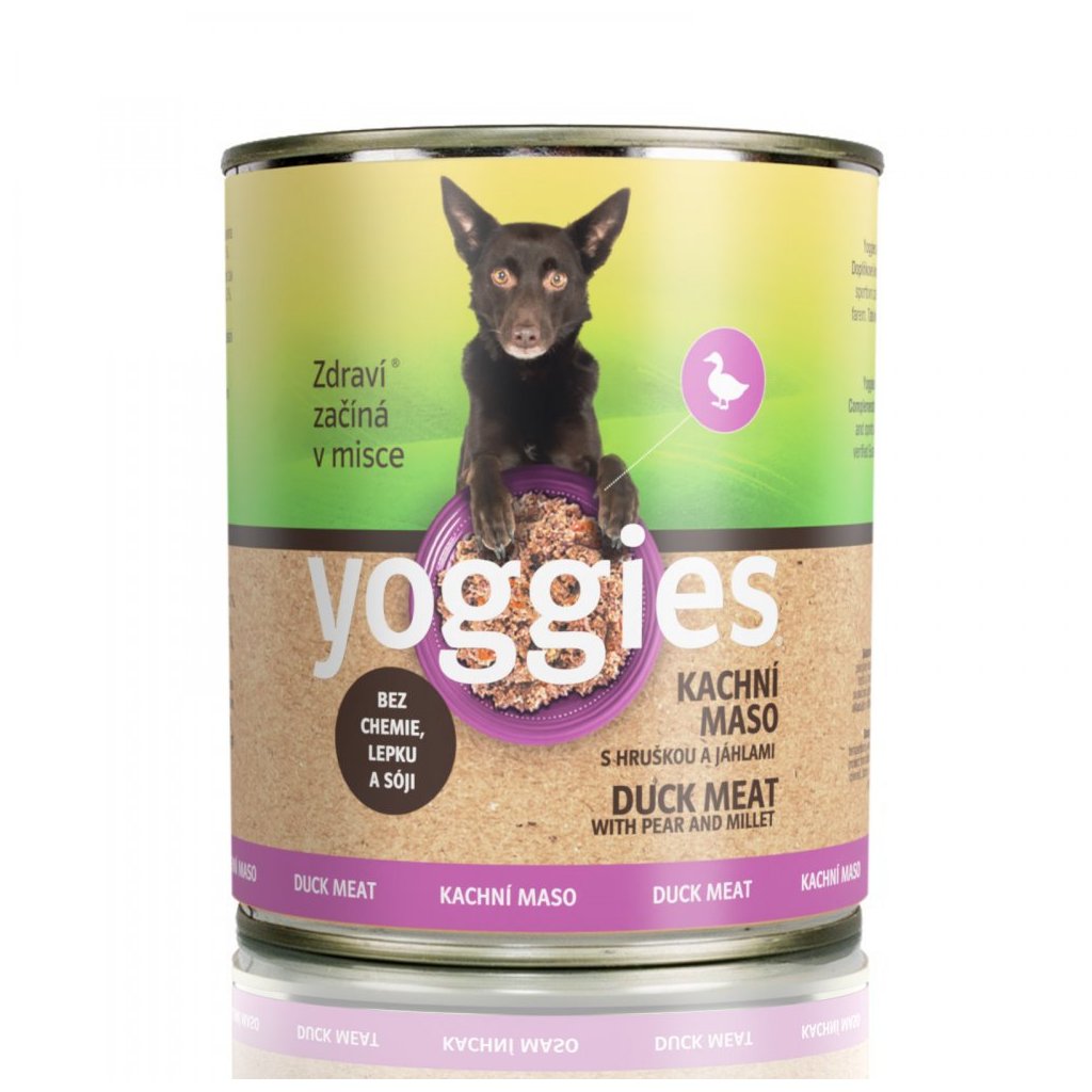 Konzerva pro psy s kvalitním kachním masem, hruškou a jáhlami bez jakýchkoliv konzervantů a dochucovadel. Konzervy pro psy Yoggies obsahují výhradně kusy masa (větší i menší) a přírodní vývar z masa a kostí (žádný bujón).
