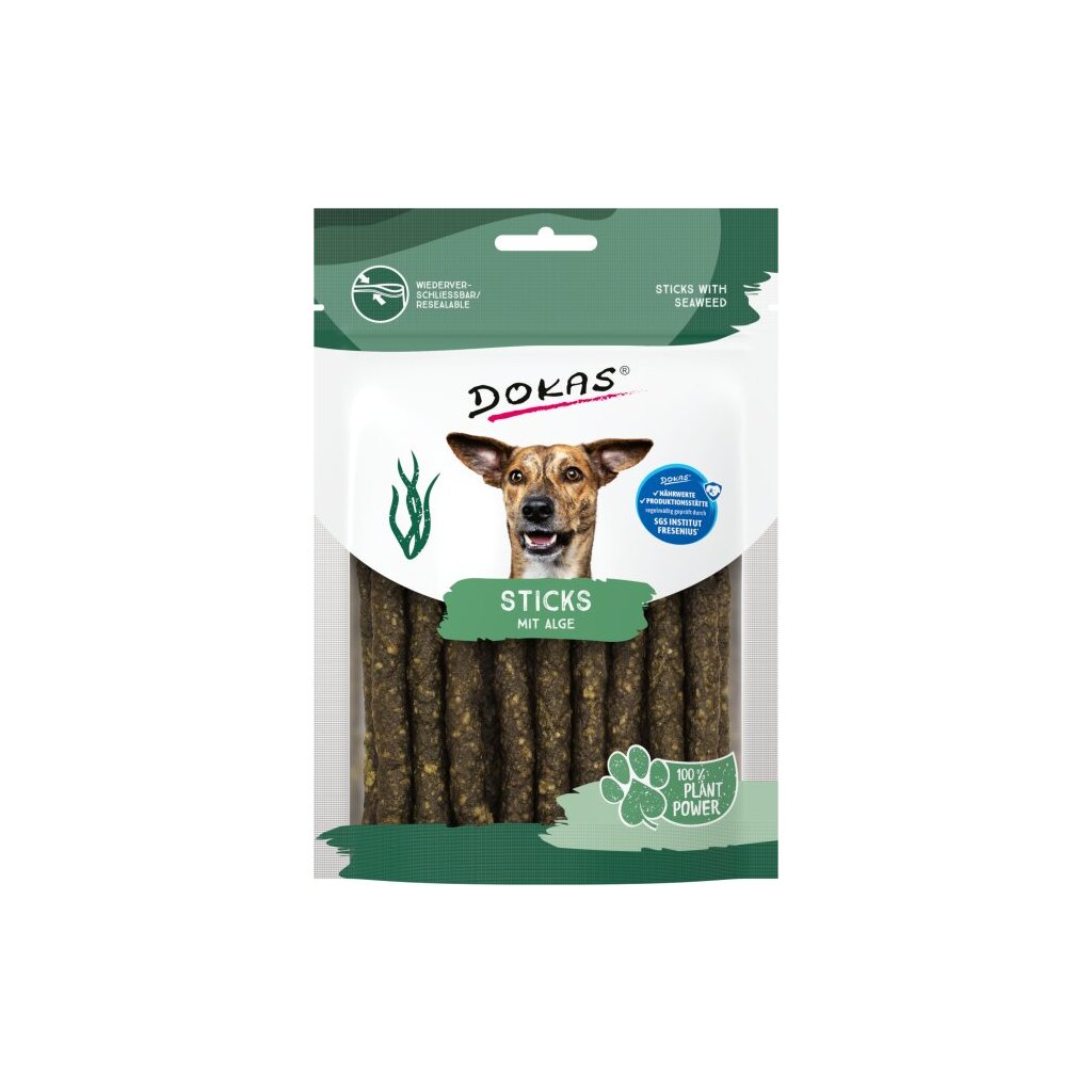 Dokas Tyčinky s kelpou a spirulinou jsou přírodní, poloměkké pamlsky, které jsou ideální pro psy. Jsou vyrobeny z rostlinných bílkovinných extraktů, ovoce a mořských řas, což je činí skvělou volbou pro zvířata s alergiemi na živočišné bílkoviny.