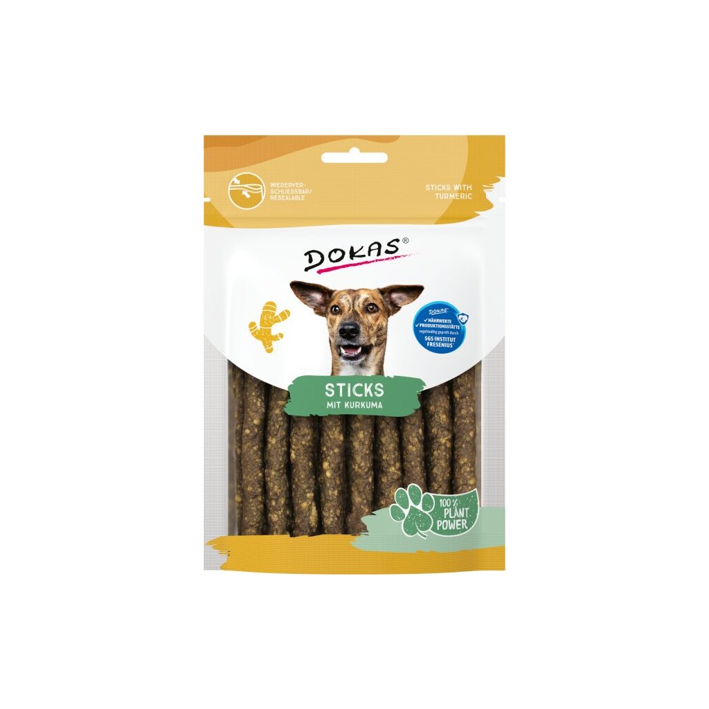Dokas Tyčinky s kurkumou 105 g jsou 100% přírodní, poloměkké pamlsky pro psy vyrobené z rostlinných bílkovinných extraktů, ovoce a zeleniny. Tyto pamlsky jsou ideální pro psy s alergiemi na živočišné bílkoviny a pro majitele, kteří preferují ekologicky šetrné a vegetariánské produkty.