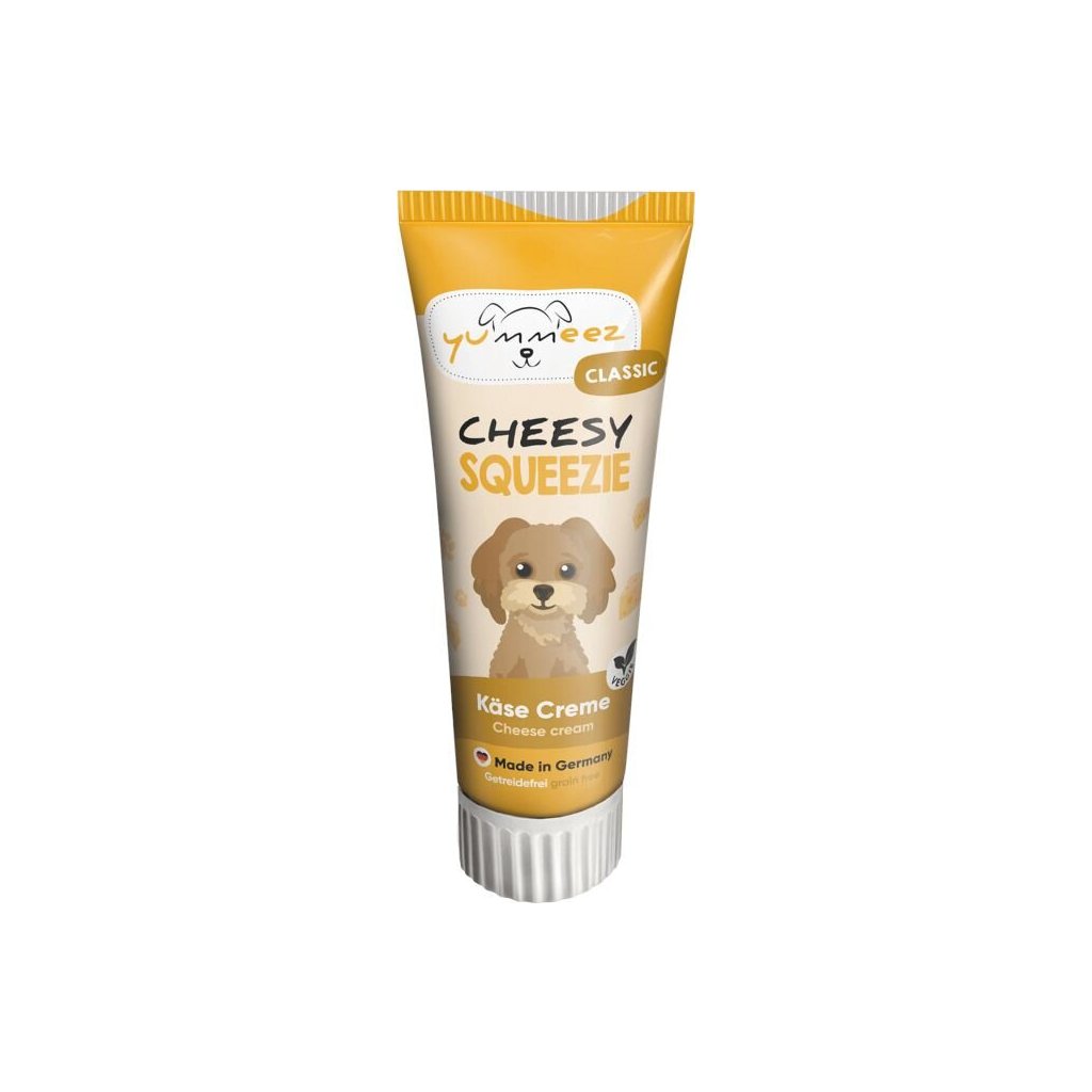 Lahodná paštika ve formě sýrové pasty v praktické tubě, která obsahuje mrkev, dýni a sýr. Je to chutná a zdravá odměna, ideální pro trénink, plnící hračky i lízací podložky.