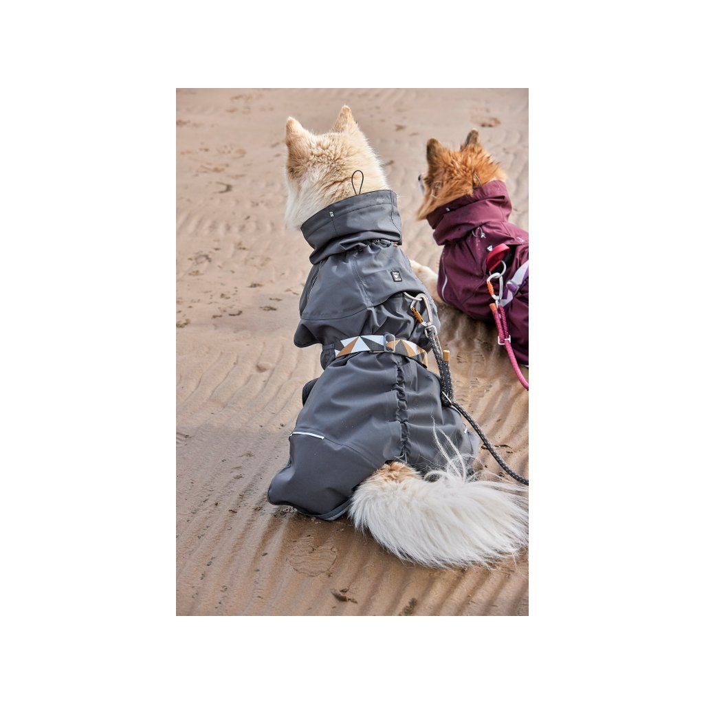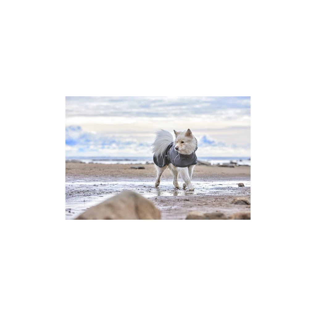Ultralehká jednovrstvá celoroční pláštěnka vhodná i pro huňaté psy či letní přeháňky. Barva ostružinová - šedá.
