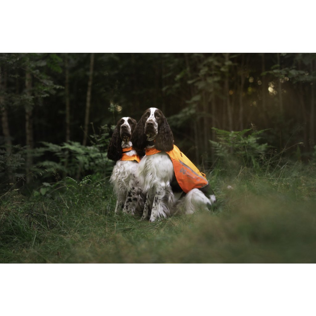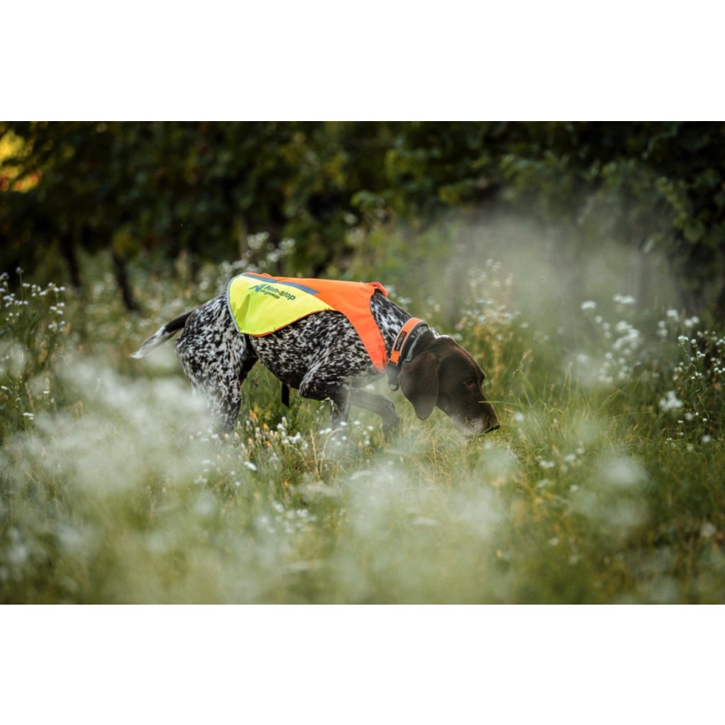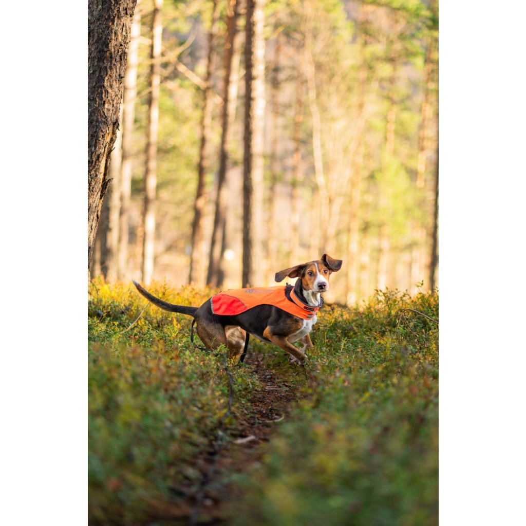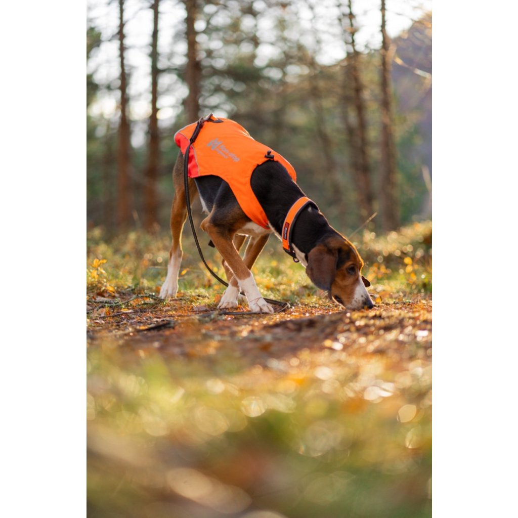 U této oranžovo-žluté varianty je díky rozdílnému barevnému provedení (jedna strana žlutý díl látky, druhá strana červený díl látky) snadné určit směr pohybu psa, což je výhodné hlavně při stopování nebo loveckém výcviku.