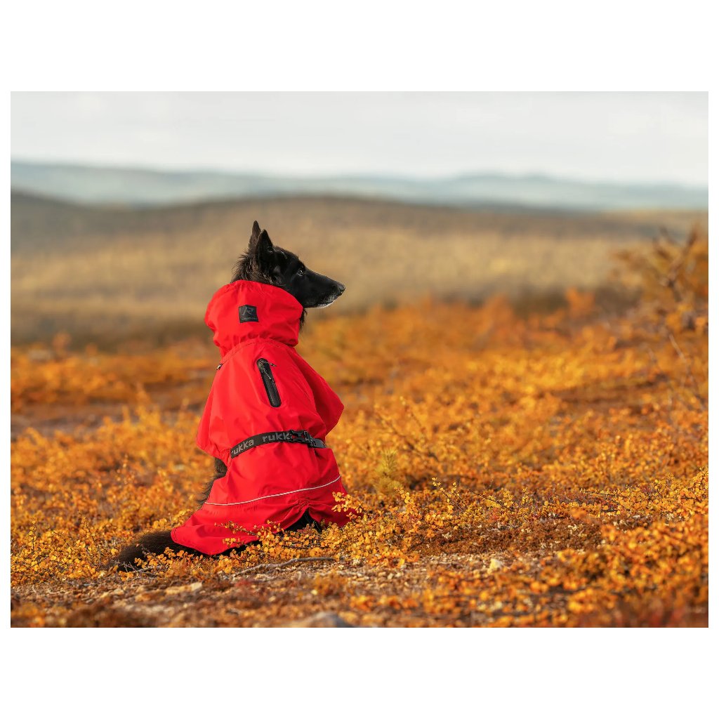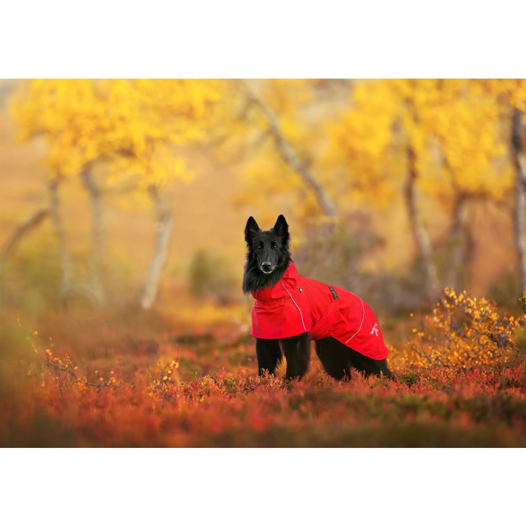 Lehká pláštěnka pro ochranu psa před deštěm a blátem, zejména na jaře a na podzim. Nejdůležitější švy pláštěnky jsou podlepené. Pláštěnka má prodyšnou podšívku ze síťoviny. Pláštěnka se snadno udržuje v čistotě a rychle schne. Vysoký ochranný límec spolu s nastavitelným krkem a pasem zajišťují, že kabát dobře sedí. Díky rychlému zapínání na přezku na zádech se kabát snadno obléká. Zadní popruhy na nohy zajistí, že pláštěnka zůstane na svém místě za všech podmínek, a to i při aktivitách s vyšší intenzitou.