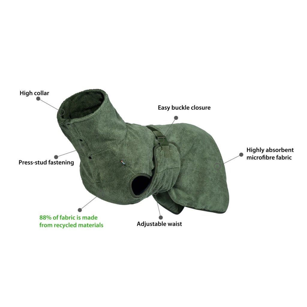 Vysoko absorpční župan vyrobený z mikrovlákna. Vysuší srst a udržuje psa v teple po koupeli nebo po procházce v dešti. Mimořádně měkký a rychleschnoucí.