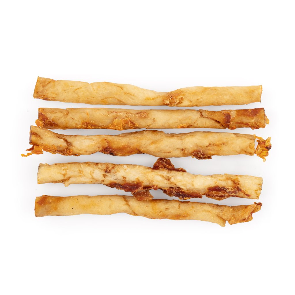 Doplňkové krmivo pro psy. Žvýkací kolagenová odměna pro vašeho chlupáče ve tvaru tenkých rolek, 5 kusů v balení.