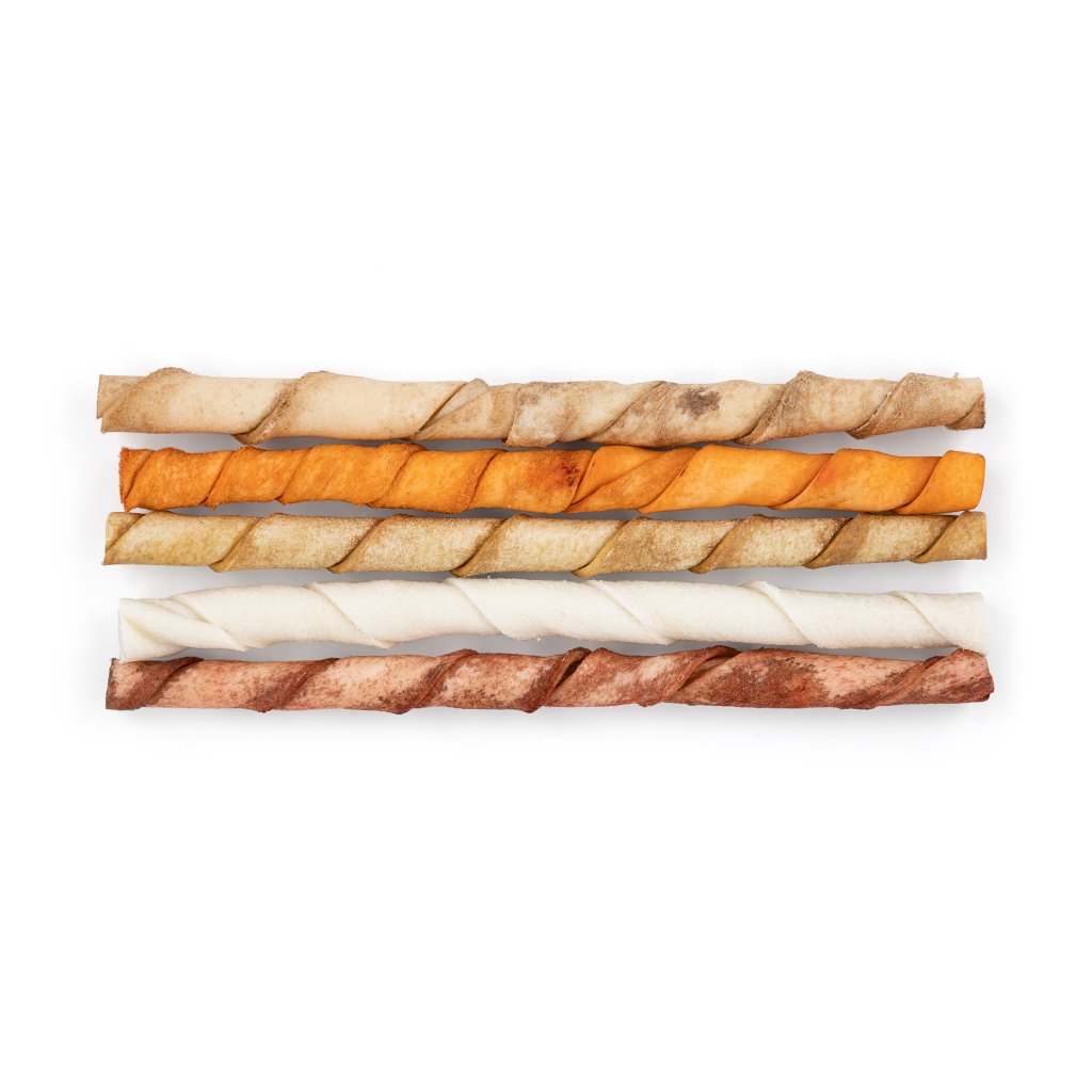 100% hovězí kůže (+ u ochucených produktů aroma)