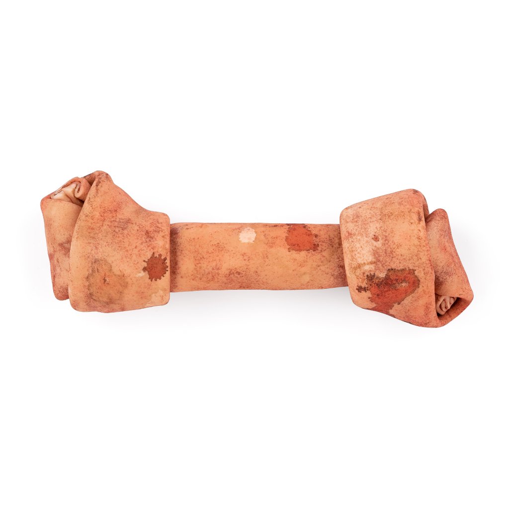 Doplňkové krmivo pro psy. Uzel z hovězí kůže, s příchutí pečené jehněčí.