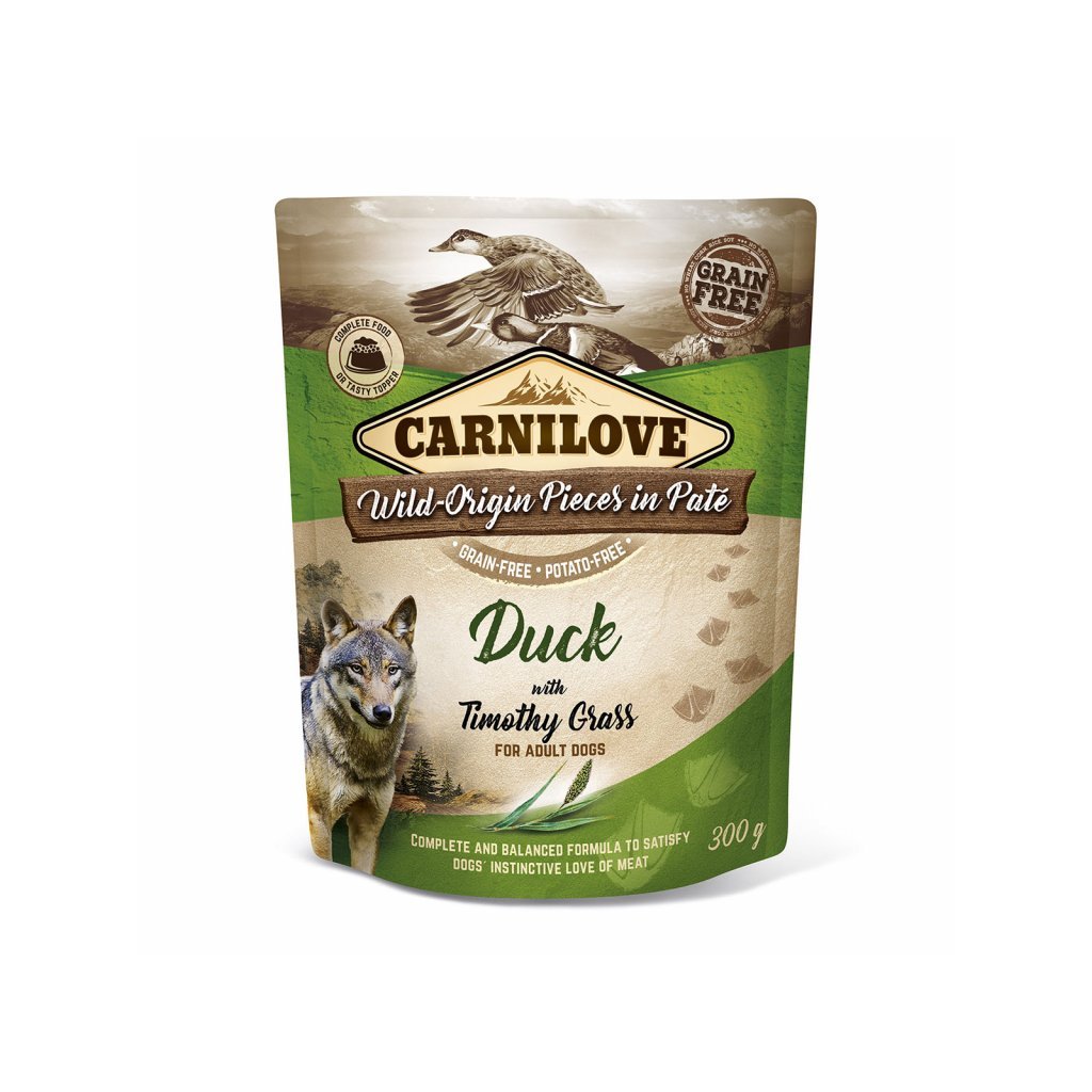 CARNILOVE Dog Pouch Paté Duck & Timothy Grass 300g