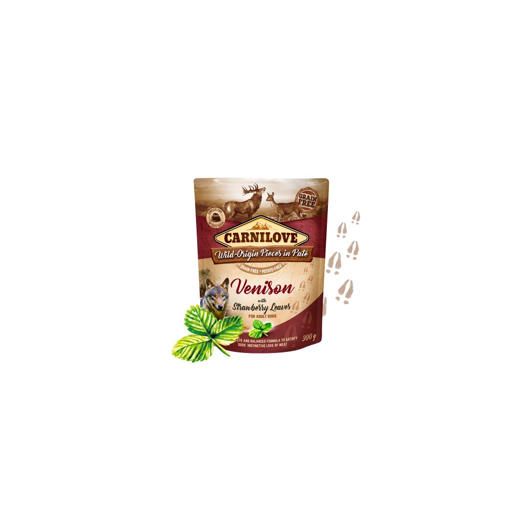 CARNILOVE Dog Pouch Paté Venison with Strawberry Leaf 300g