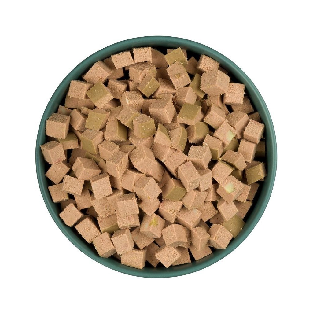 Složení: krůtí maso a krůtí vnitřnosti 90%, brambory 5%, brokolice 3%, minerály 1%, vápenec 1%