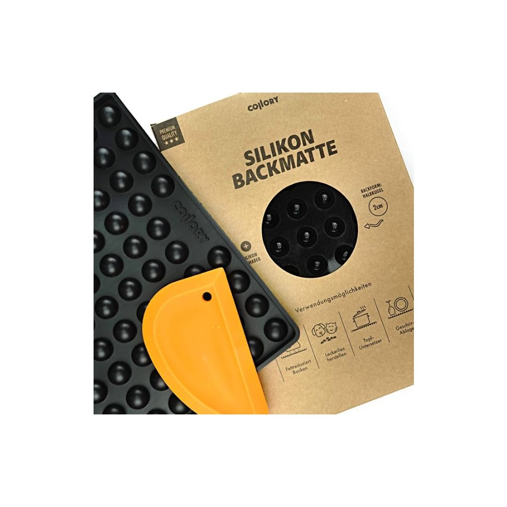 Collory - pečicí formička Polokoule velké 2 cm + stěrka; černá + oranžová stěrka