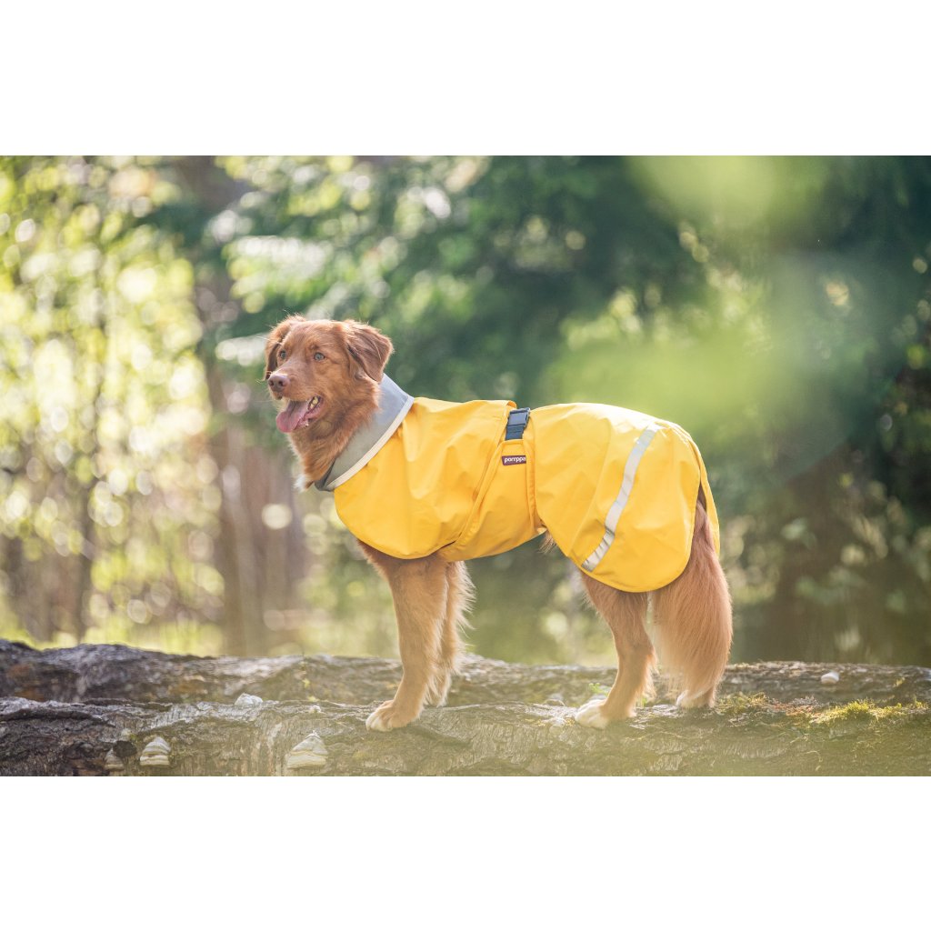 KuoriPomppa je pláštěnka pro psa bez podšívky. Chrání psa před deštěm, větrem a blátem. KuoriPomppa má oblíbený design jako ostatní oblečky Pomppy, ale s novými výhodami!