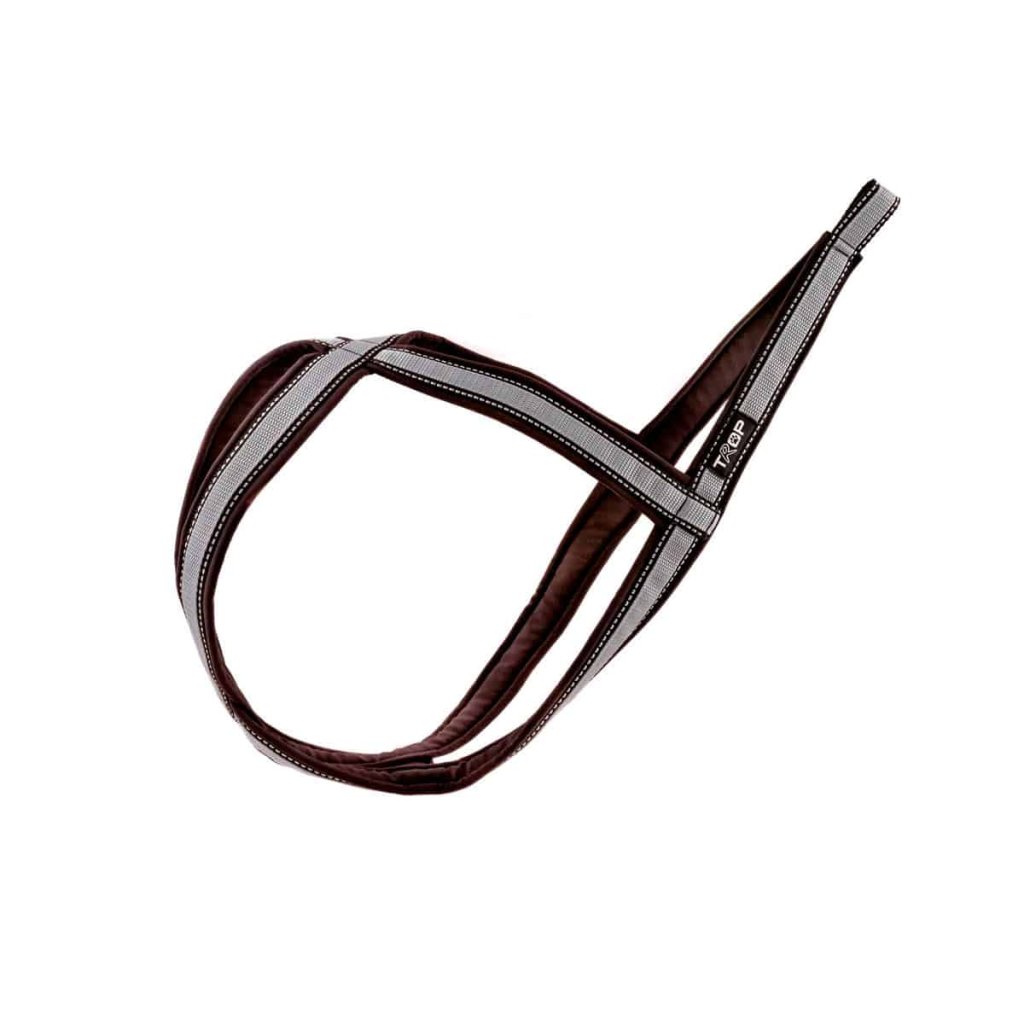 Popruhy na spodní straně hrudi tvoří trojúhelník, který krásně obepíná hrudník pro maximální pohodlí a ideální distribuci tahu. Otvor krku je poměrně nízko, bod tlaku je tím posunutý také níže a nedochází k omezení dýchacích cest a je zajištěno správné rozložení tažné síly.