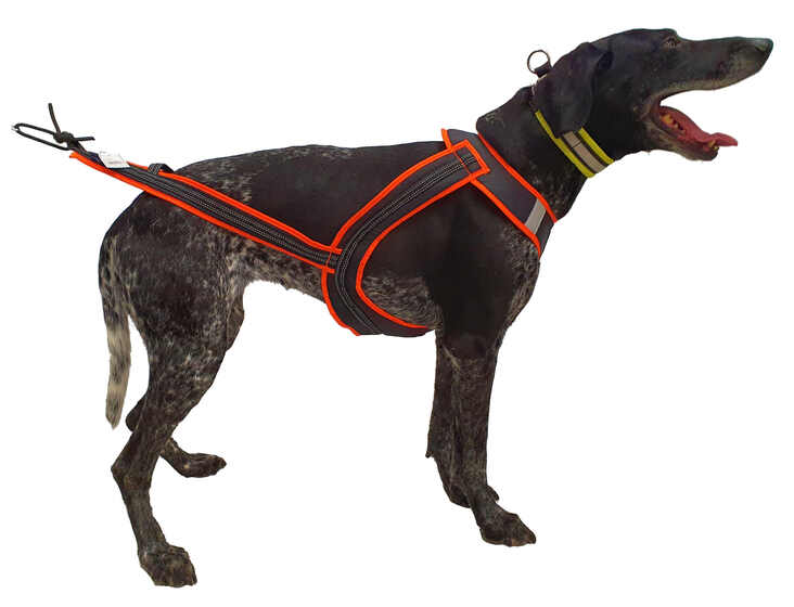 ✔ Ideální velikost postroje, umožňuje volný pohyb předních nohou. Ukončení postroje u kořene ocasu může být i několik centimetrů před i za kořenem - toto nemá vliv na funkci postroje.