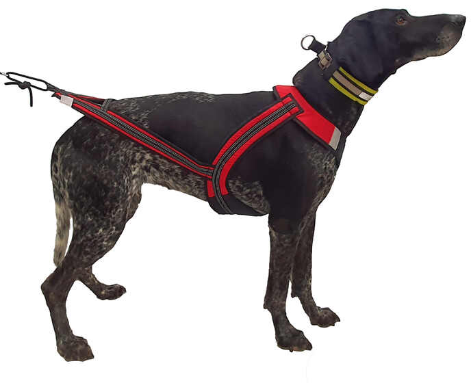 - umožňuje volný pohyb končetin a hřbetu psa (v zatáčkách nesklouzává a nezpůsobuje tak odřeniny). Využíván sportovci po celém světě.