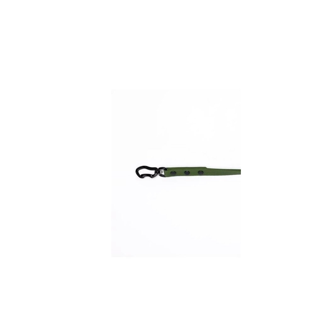 Vodítko je zakončeno pevnou černou hliníkovou karabinou, která zajišťuje vysokou nosnost při nízké hmotnosti. Vzhledem ke své konstrukci je vodítko bez poutka na konci, což minimalizuje riziko zachycení o překážky při pohybu v přírodě nebo během výcviku.