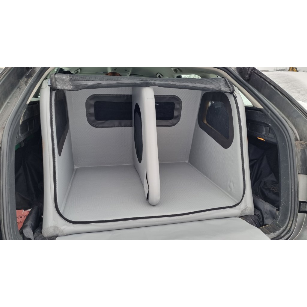 Cestuješ se dvěma psy? Nafukovací přepážka rozdělí tvůj TAMI box do kufru na dva samostatné prostory. Snadná instalace pomocí suchého zipu, flexibilní rozdělení prostoru.