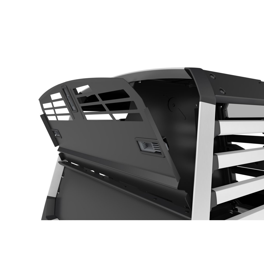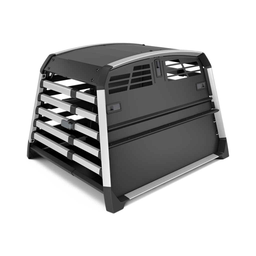 Thule Allax double je flexibilní přepravní klec, kterou lze použít pro dva psy nebo ji jednoduchým odebráním dělící stěny přizpůsobit jednomu většímu psovi. Nastavitelná stěna umožňuje vytvořit více prostoru podle velikosti psů. Klec je nárazově testovaná, certifikovaná TÜV SÜD a vybavená deformační zónou pro maximální ochranu. Plynově tlumené dveře s vestavěným zámkem zajišťují lehké a bezpečné používání.