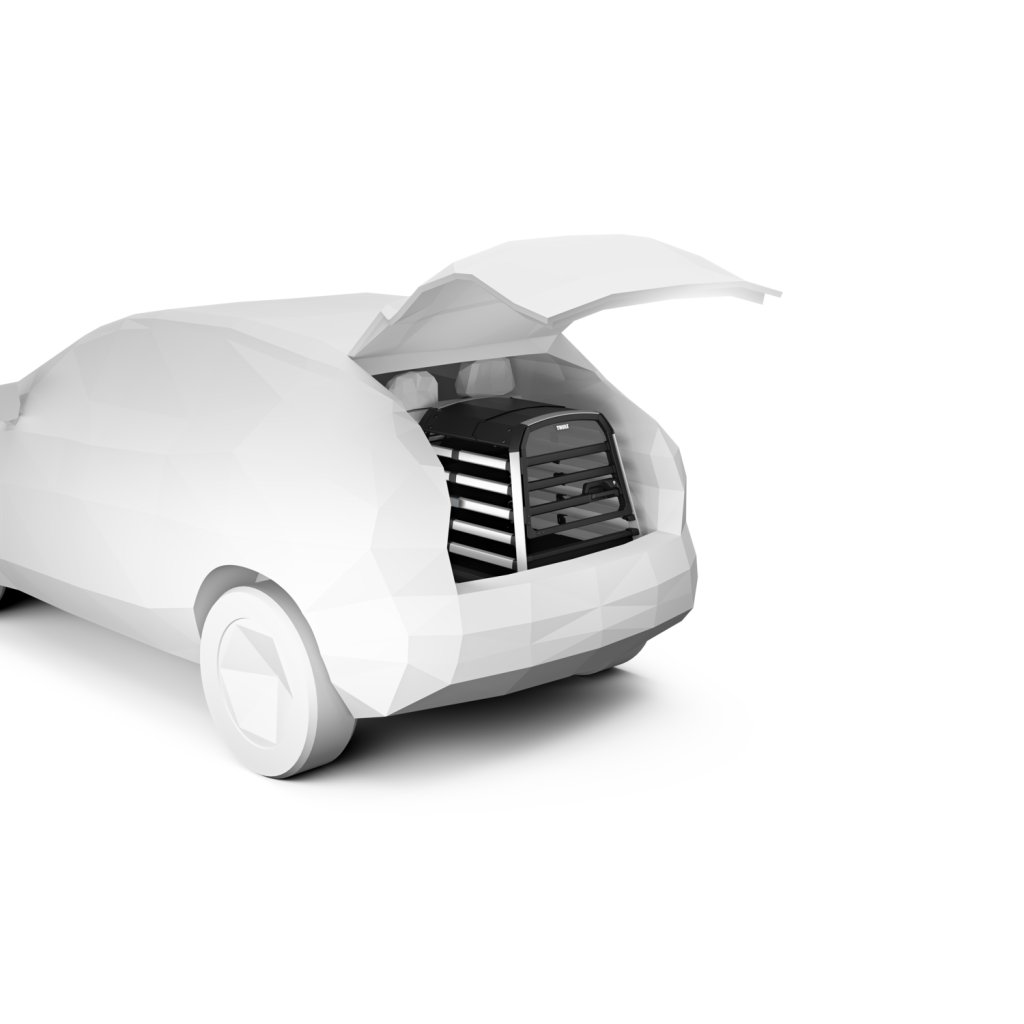 Klec je dostupná v pěti velikostech a je speciálně navržena pro vozidla s prahem v zavazadlovém prostoru. Zaoblené hrany, nastavitelná hloubka a bezpečné upevnění pomocí napínacích pásků zajišťují ideální usazení v kufru. Precizní zpracování garantuje bezhlučný provoz bez vibrací a rachocení.