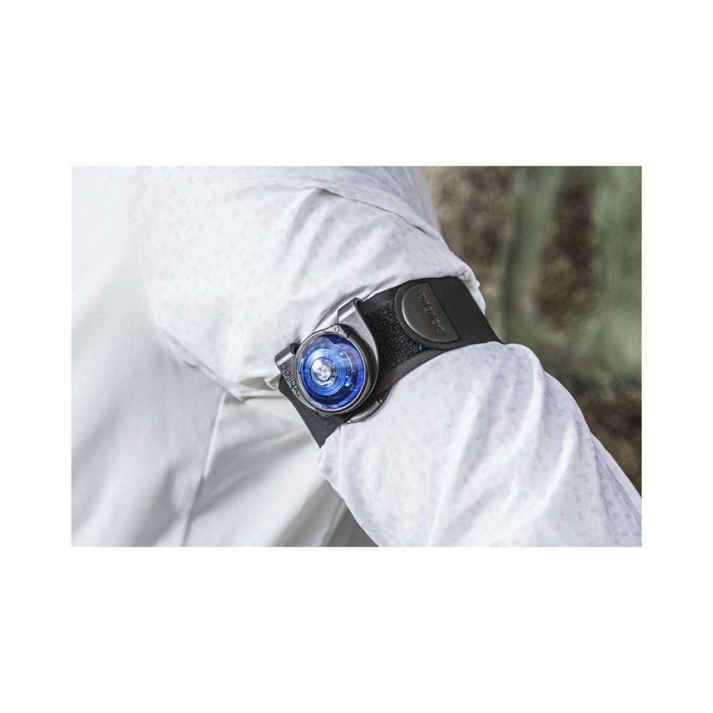 Pásek na ruku Orbiloc nabízí bezpečný a pohodlný způsob, jak připevnit bezpečnostní světlo Orbiloc na paži nebo nohu, abyste byli viditelní během běhu nebo jiné aktivity.