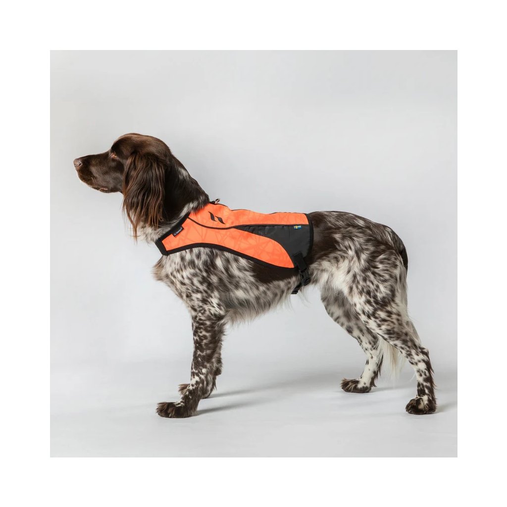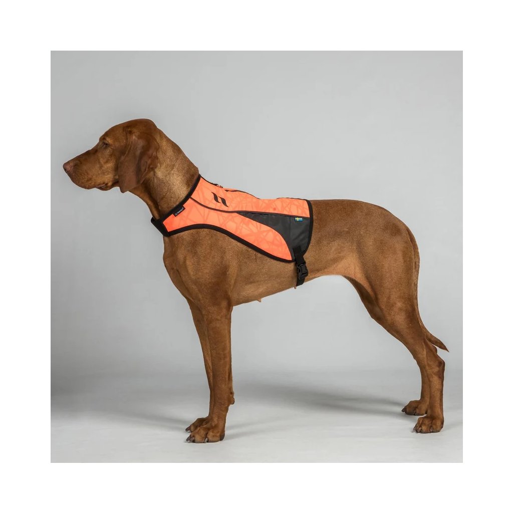 Profesionální vesta navržená pro maximální viditelnost a pohodlí psů v terénu. Výrazná oranžová barva s reflexním vzorem a reflexními detaily zajišťuje výbornou viditelnost ve dne i za šera.