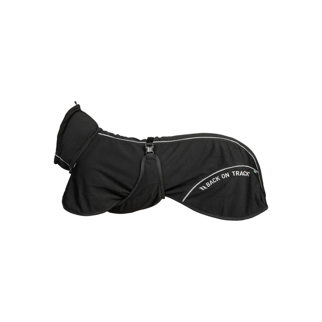 Střih je navržen tak, aby těsně obepínal tělo psa, ale neomezoval v pohybu. Zavinovací konstrukce vpředu i vzadu zajišťuje prostor pro pohyb nohou i ocasu – ideální pro psy s vysoko nasazeným ocasem. Oblast stehen, hrudníku a kořene ocasu je jemně obepnutá pro lepší přilnavost a účinnost látky.