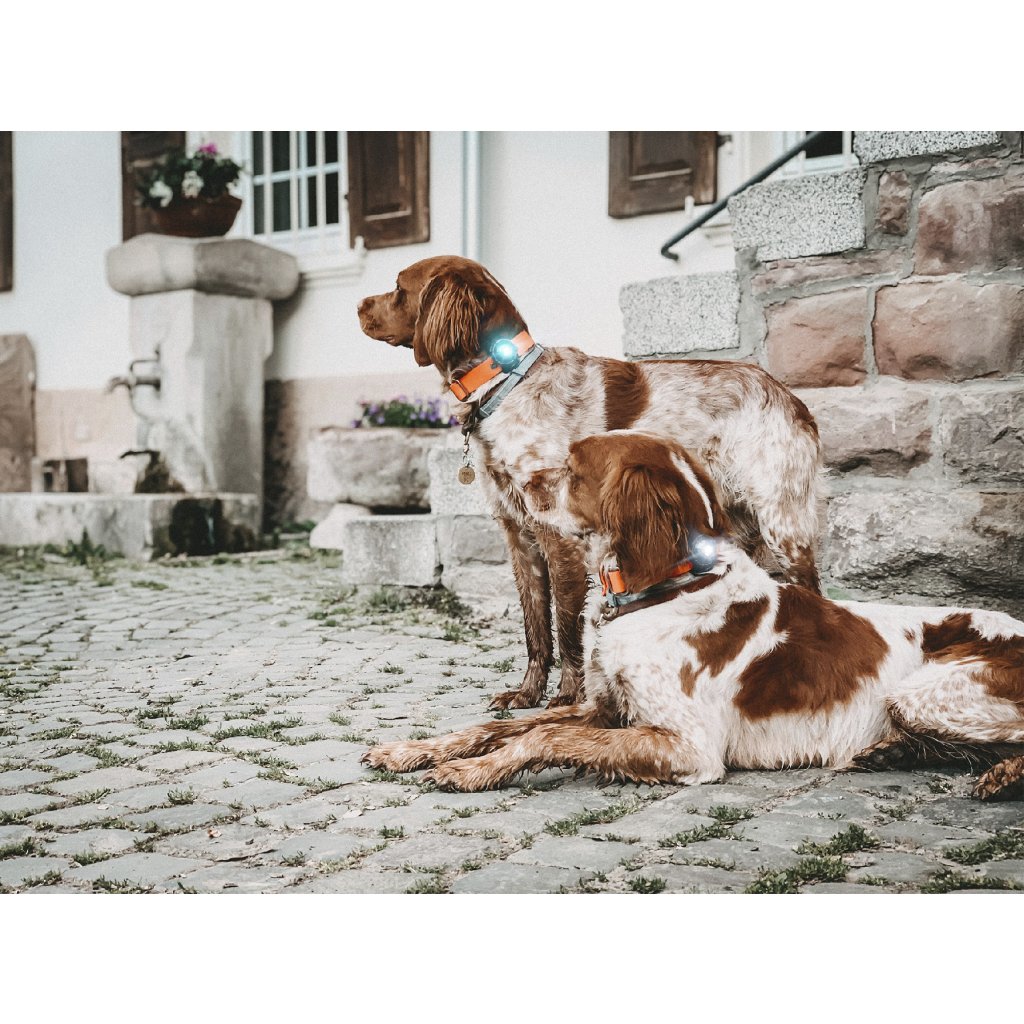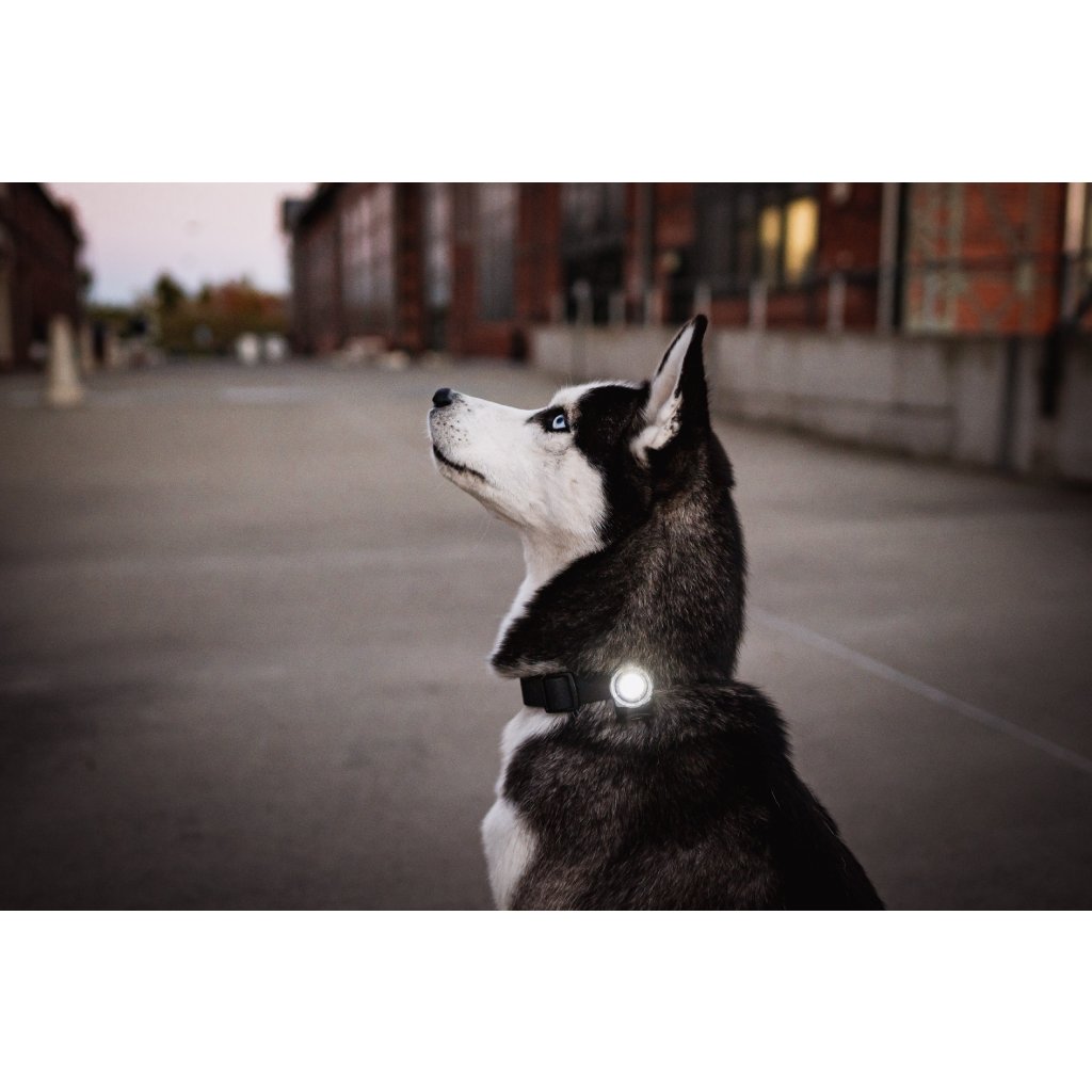 Bezpečnostní světýlko Orbiloc Dog Dual je vysoce viditelné světlo, které zajišťuje viditelnost tvého psa na procházce v šeru či tmě.