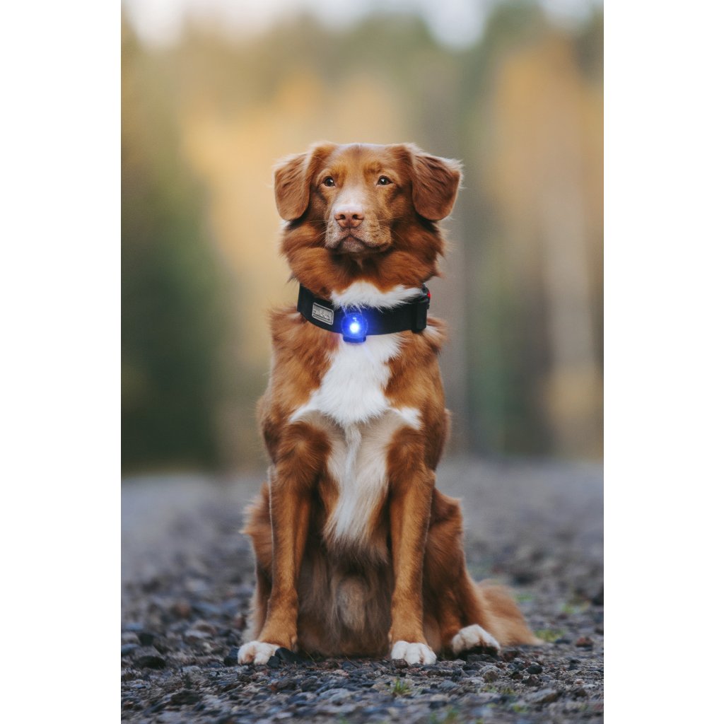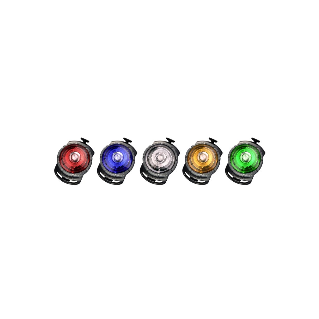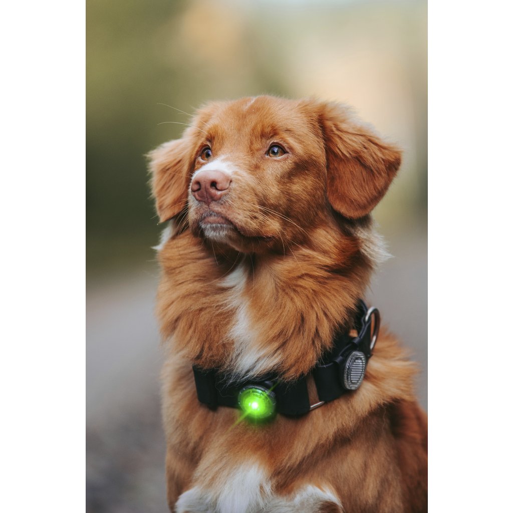 Bezpečnostní světýlko Orbiloc Dog Dual je vysoce viditelné světlo, které zajišťuje viditelnost tvého psa na procházce v šeru či tmě.