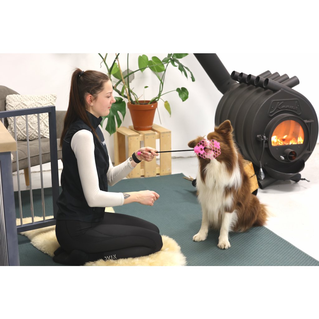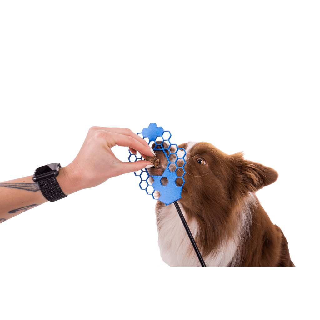Díky targetu s rukojetí se pes velmi rychle naučí nose touch. Skvělá pomůcka nejen do obedience.