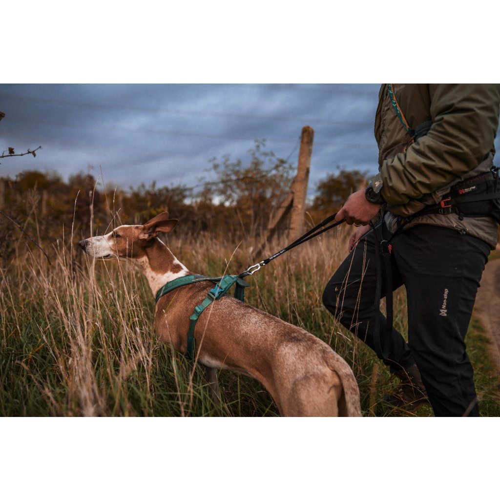 Pružné vodítko určené pro sportovní aktivity jako je canicross (běh se psem), které efektivně eliminuje trhavé pohyby mezi psem a běžcem.