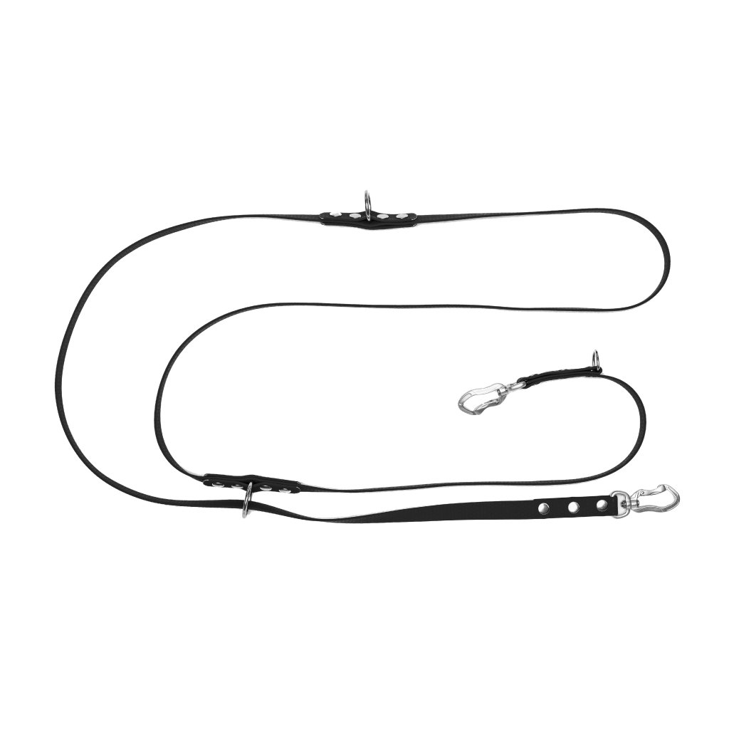 Přepínací vodítko s hliníkovou karabinou z hexa popruhu je skvělou volbou pro každodenní procházky. Vodítko lze použít jako klasické vodítko s ručkou (délka 280 cm, nebo kratší), přehodit přes rameno a připnout psa, nebo pouze nést přes rameno a nikde nebude vlát.