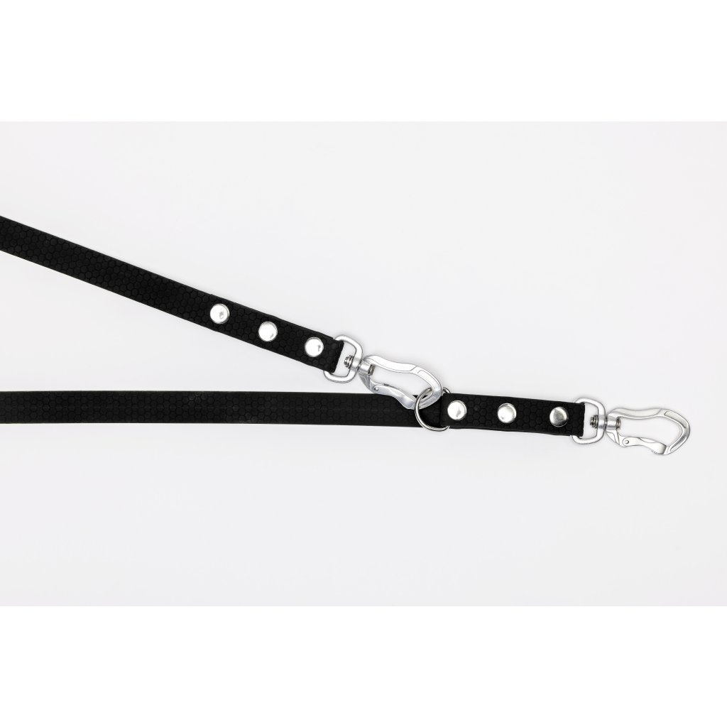 Přepínací vodítko se stříbrnou hliníkovou karabinou pro vašeho chlupáče z voděodolného hexa popruhu.