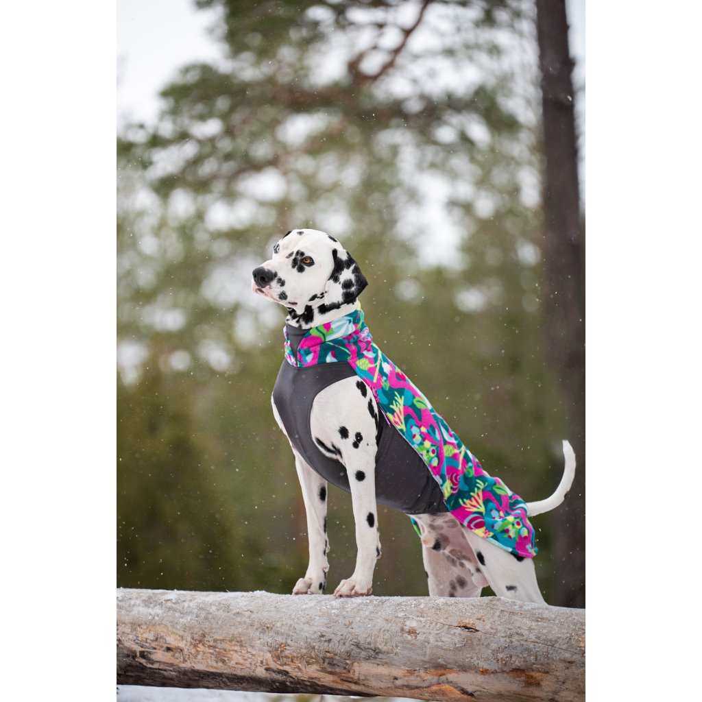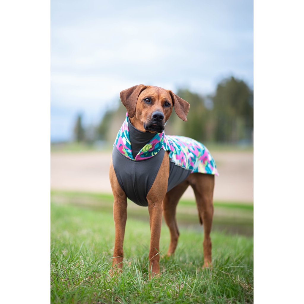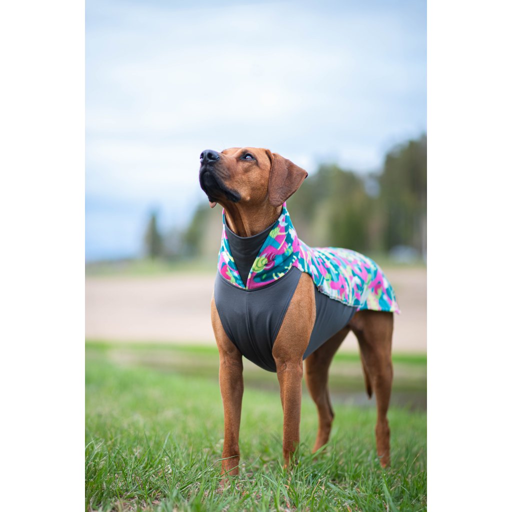 Vysoce elastická a všestranná mikina pro psy. Kombinace měkkého fleecu a termotrikotu je vhodná pro celoroční nošení. Barva Trail.